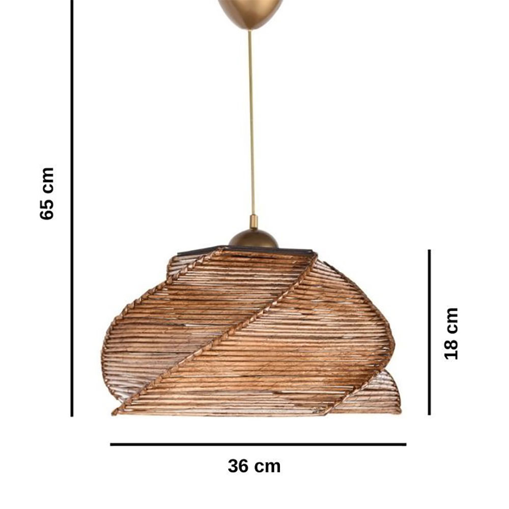 Φωτιστικό οροφής με μοντέρνο στυλ σε καφέ χρώμα. Ο σκελετός του καπέλου είναι ξύλινος με επένδυση από τεχνητό bamboo. Υπάρχει δυνατότητα αυξομείωσης του συνολικού ύψους έως 65εκ. μέσω του καλωδίου ανάρτησης. Τύπος ντουί: 1xE27 και θέση για 1 λαμπτήρα έως 40W (δεν συμπεριλαμβάνεται).