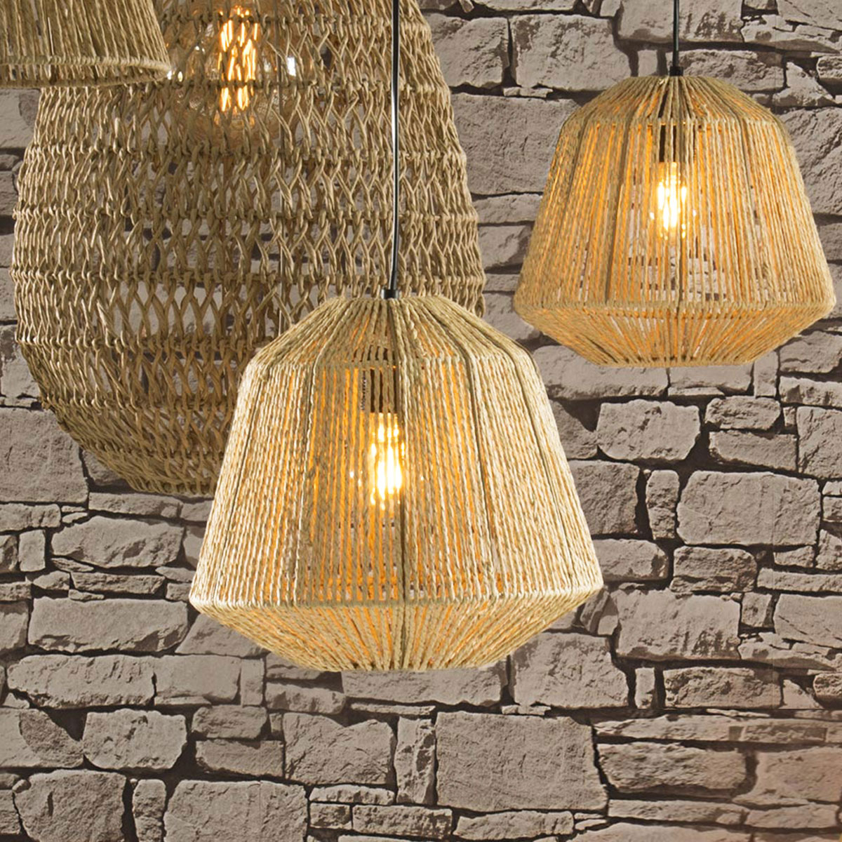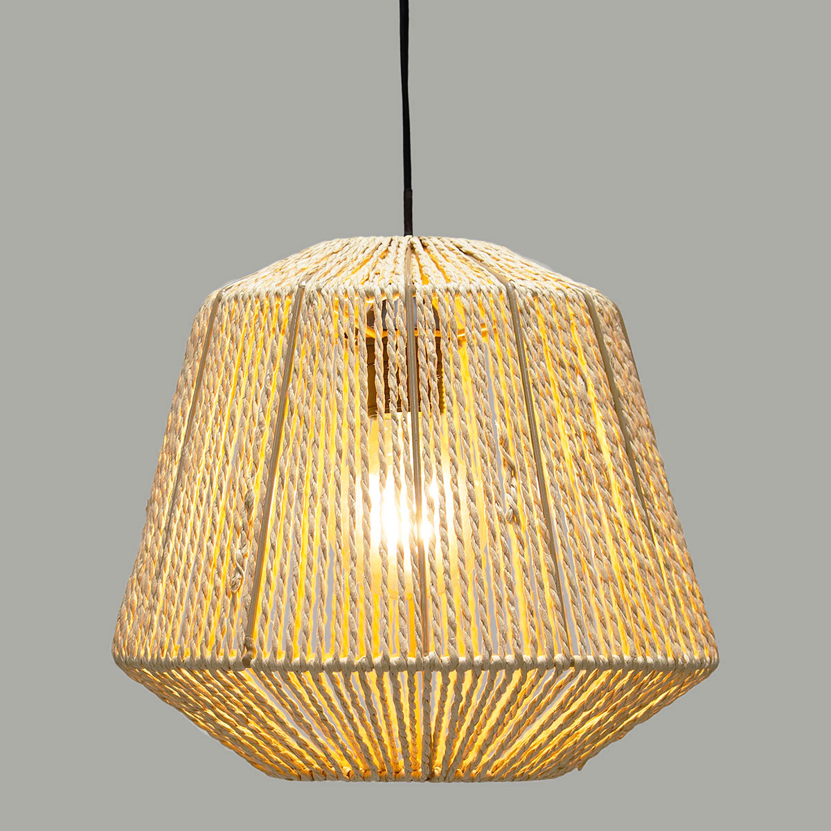 Μονόφωτο κρεμαστό φωτιστικό με μίνιμαλ ύφος. Το καπέλο είναι κατασκευασμένο από χάρτινο σχοινί σε μπεζ απόχρωση και ο σκελετός είναι μεταλλικός. Το διαθέσιμο καλώδιο είναι κατασκευασμένο από PVC με μήκος 90εκ., παρέχοντας την δυνατότητα αυξομείωσης του συνολικού ύψους του φωτιστικού. Τύπος ντουί: 1xE27 και θέση για 1 λαμπτήρα έως 40W (δεν συμπεριλαμβάνεται).