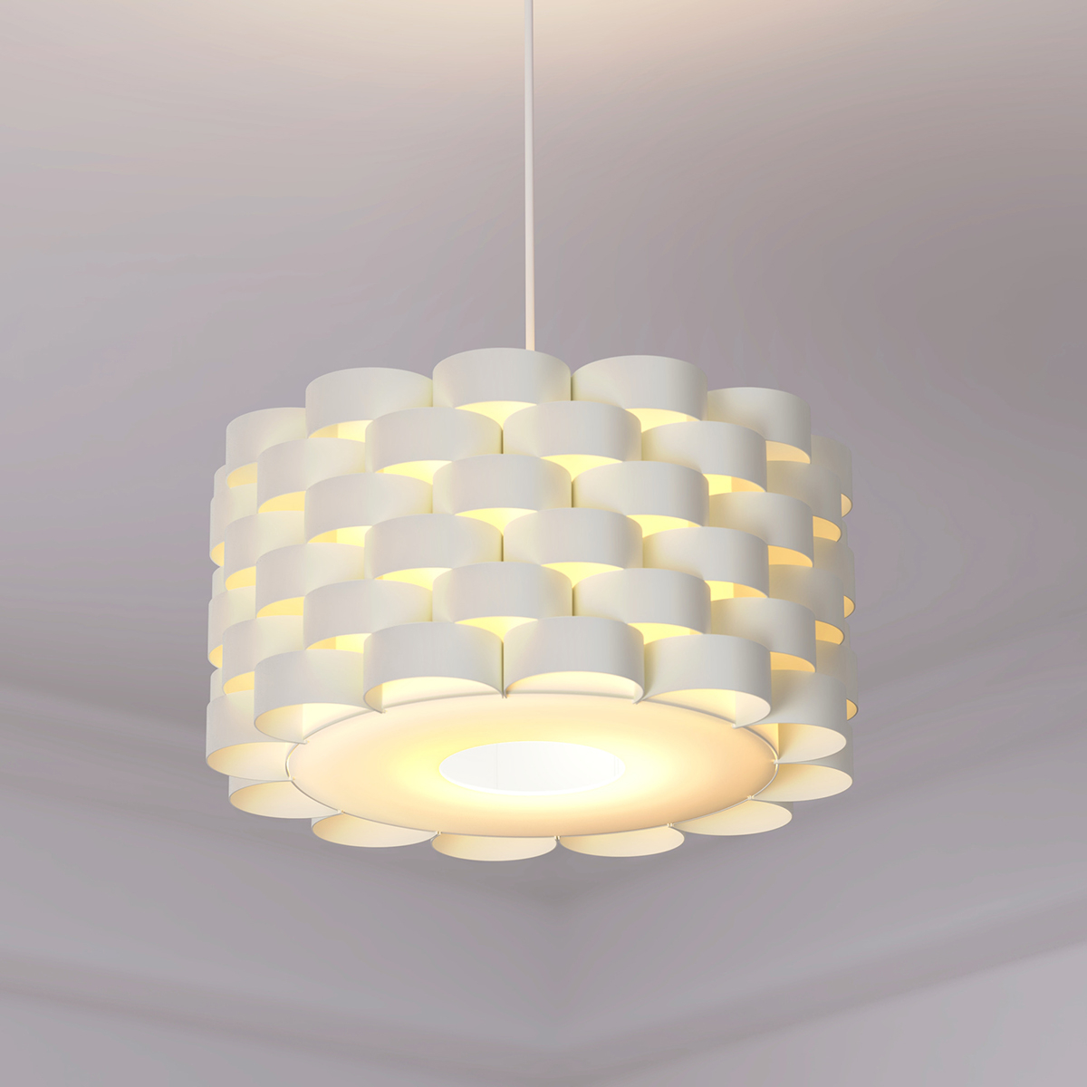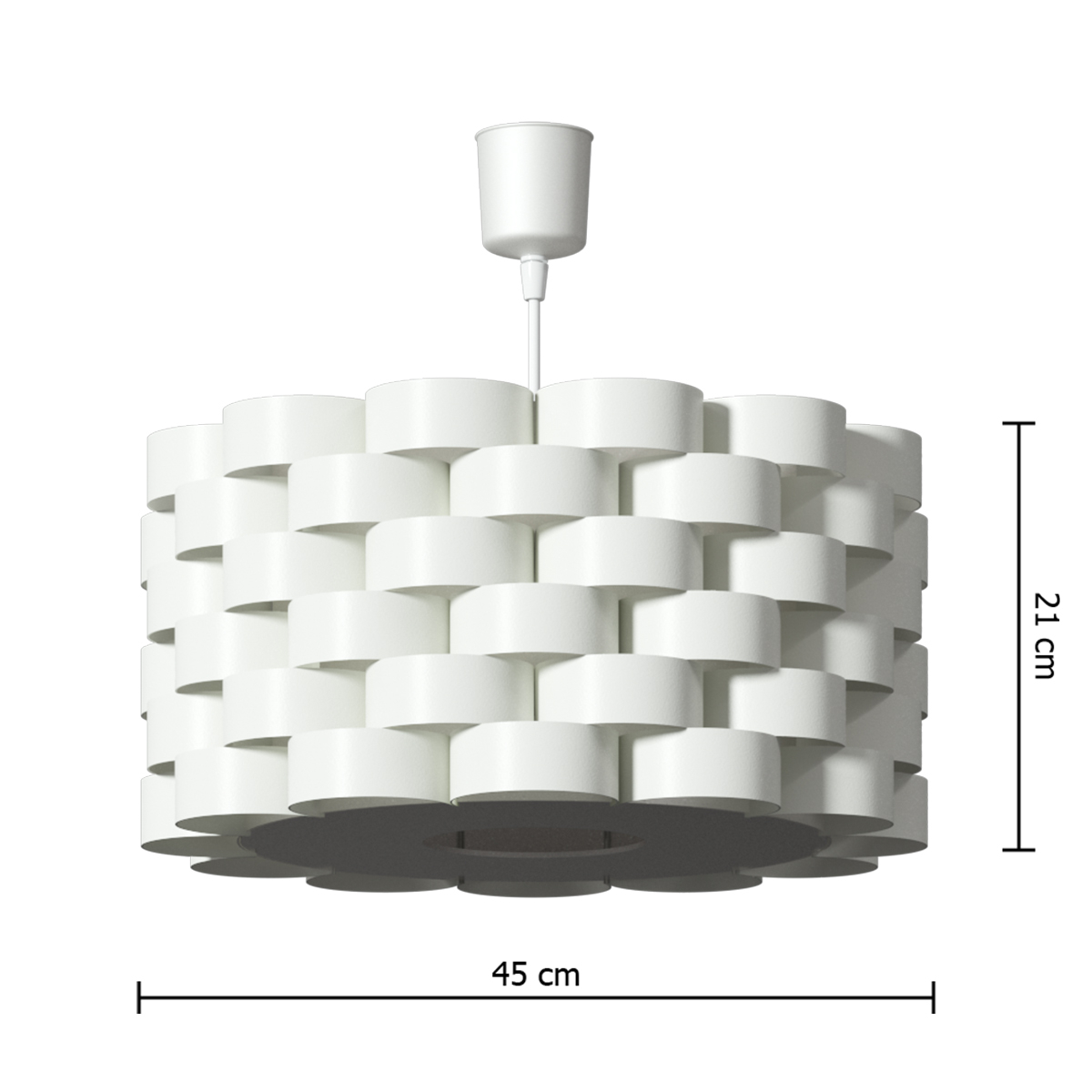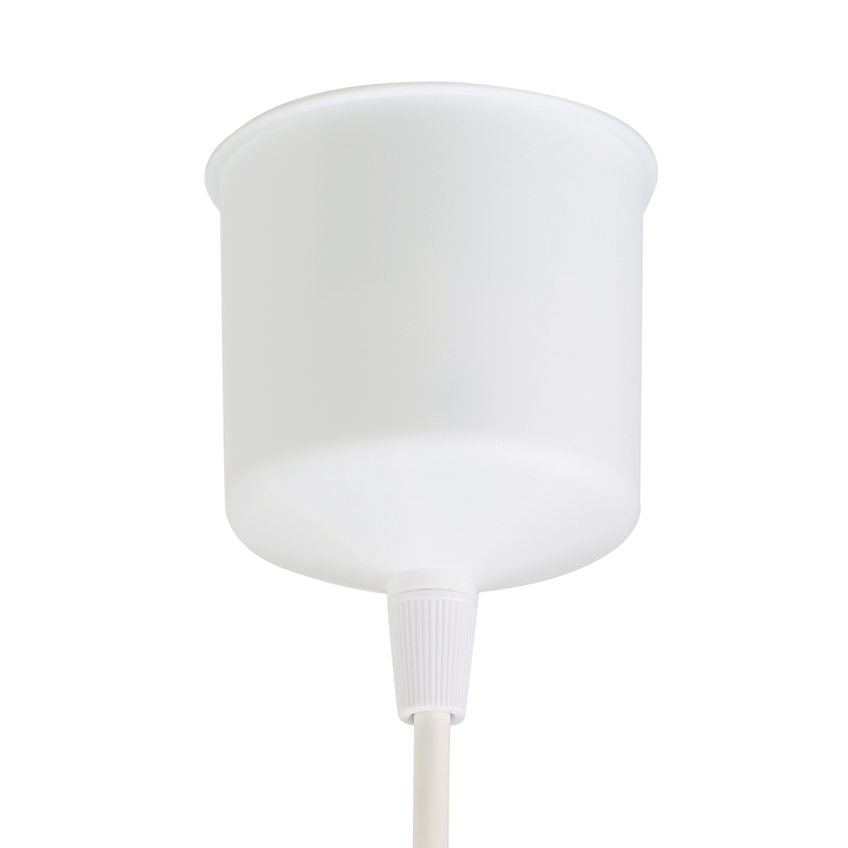 Μονόφωτο κρεμαστό φωτιστικό με μοντέρνο ύφος. Το καπέλο είναι κατασκευασμένο από πλαστικό υλικό σε λευκό χρώμα με λεπτομέρειες από λευκό χοντρό χαρτόνι. Διαθέτει λευκό καλώδιο 85εκ. και λευκή βάση. Το διαθέσιμο καλώδιο παρέχει την δυνατότητα αυξομείωσης του συνολικού ύψους του φωτιστικού. Τύπος ντουί: 1xE27 και θέση για 1 λαμπτήρα έως 60W (δεν συμπεριλαμβάνεται). Συνδυάστε το με τα υπόλοιπα φωτιστικά της ίδιας συλλογής για ένα ολοκληρωμένο αποτέλεσμα στο χώρο σας.