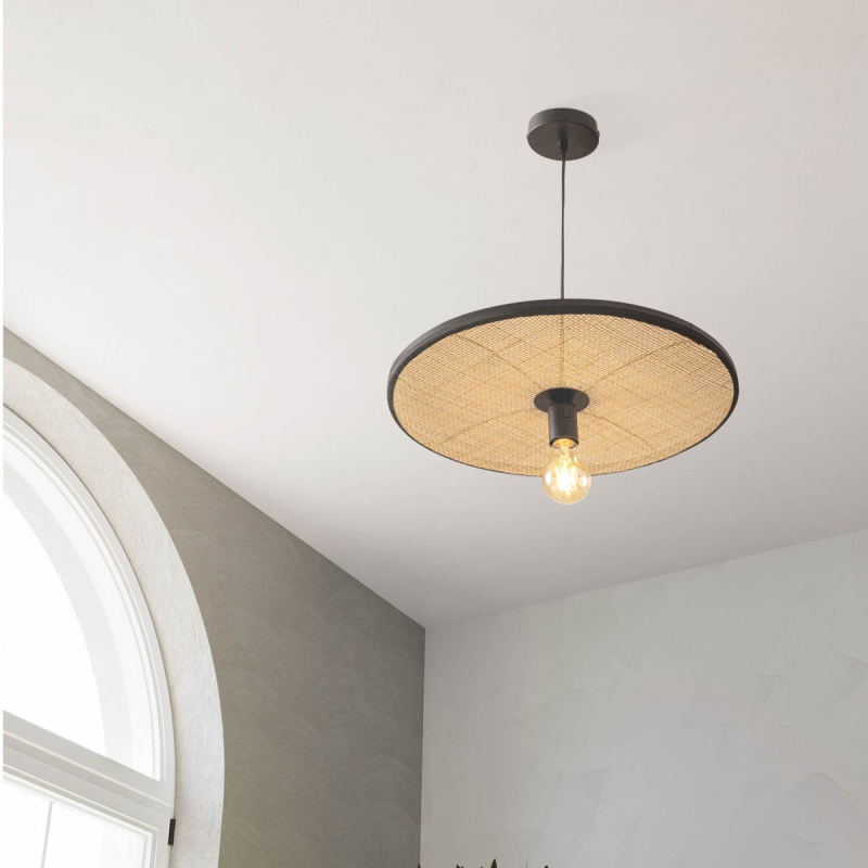 Μονόφωτο κρεμαστό φωτιστικό με μοντέρνο σχεδιασμό. Είναι κατασκευασμένο από μεταλλικό υλικό σε μαύρο χρώμα με μπεζ λεπτομέρειες. Διαθέτει καλώδιο, παρέχοντας την δυνατότητα αυξομείωσης του συνολικού ύψους του φωτιστικού. Τύπος ντουί: 1xE27 και θέση για 1 λαμπτήρα έως 40W (δεν συμπεριλαμβάνεται).
