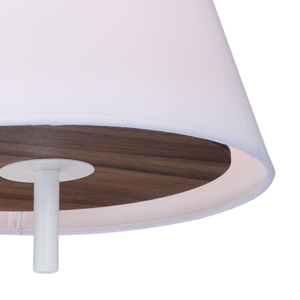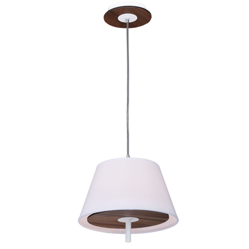 Φωτιστικό οροφής της εταιρείας Aca Decor σε μοντέρνο στυλ. Είναι κατασκευασμένο από ξύλο MDF σε σκούρη φυσική απόχρωση και λευκό υφασμάτινο καπέλο. Το καλώδιο είναι κατασκευασμένο από διαφανές PVC και η βάση τοποθέτησης είναι ξύλινη σε σκούρη φυσική απόχρωση. Τύπος ντουί: 1xΕ27 και θέση για ένα λαμπτήρα έως 40W (δεν συμπεριλαμβάνεται).