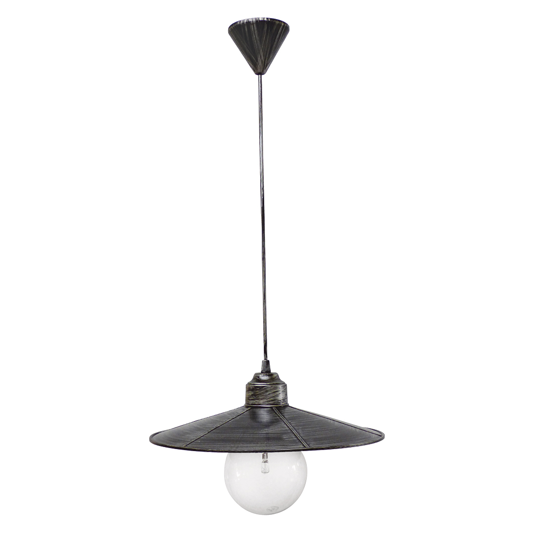 Φωτιστικό οροφής της εταιρείας Heronia σε μοντέρνο στυλ. Είναι κατασκευασμένο από πλαστικό υλικό σε ασημί απόχρωση με εφέ παλαίωσης. Υπάρχει δυνατότητα αυξομείωσης του συνολικού ύψους έως 80κ. μέσω του καλωδίου ανάρτησης. Διαθέτει βάση τοποθέτησης και καλώδιο στην ίδια απόχρωση. Τύπος ντουί: 1xE27 και θέση για 1 λαμπτήρα **ΑΠΟΚΛΕΙΣΤΙΚΑ LED έως 10W** (δεν συμπεριλαμβάνεται). Δεν περιλαμβάνονται οι βίδες στερέωσης.