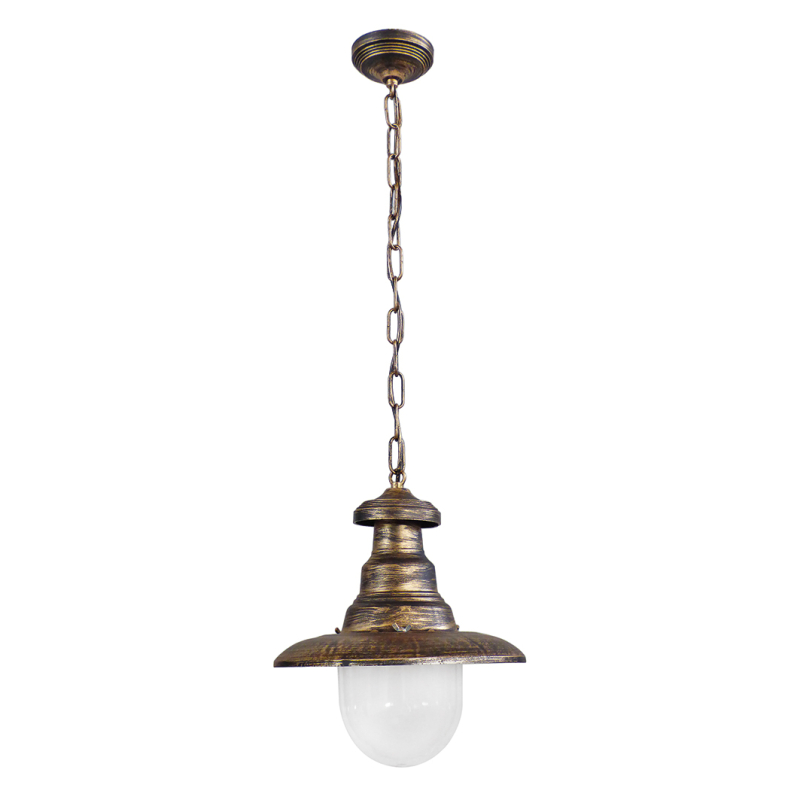 Φωτιστικό οροφής της εταιρείας Heronia σε vintage στυλ και σχήμα πυροφάνι. Είναι κατασκευασμένο από πλαστικό υλικό σε μπρονζέ απόχρωση με εφέ παλαίωσης και ασημί λεπτομέρειες. Φέρει διάφανη μπάλα από πολυκαρβονικό υλικό. Υπάρχει δυνατότητα αυξομείωσης του συνολικού ύψους έως 90κ. μέσω του καλωδίου και της μεταλλικής αλυσίδας ανάρτησης. Η βάση τοποθέτησης, το καλώδιο και η αλυσίδα έχουν την ίδια απόχρωση με το καπέλο. Διαθέτει προστασία από υγρασία και σκόνη με βαθμό στεγανότητας IP33 και είναι κατάλληλο και για εξωτερικούς χώρους. Τύπος ντουί: 1xE27 και θέση για 1 λαμπτήρα **ΑΠΟΚΛΕΙΣΤΙΚΑ LED έως 10W** (δεν συμπεριλαμβάνεται). Δεν περιλαμβάνονται οι βίδες στερέωσης.