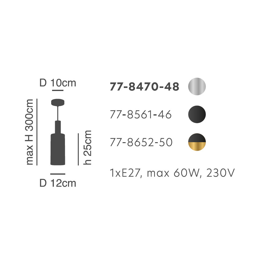 • Τεμάχια: Μέγιστο Ύψος 300εκ. & Βάση Φ10εκ., 1 Φωτιστικό Οροφής Μονόφωτο Φ12εκ.x25εκ.Υ