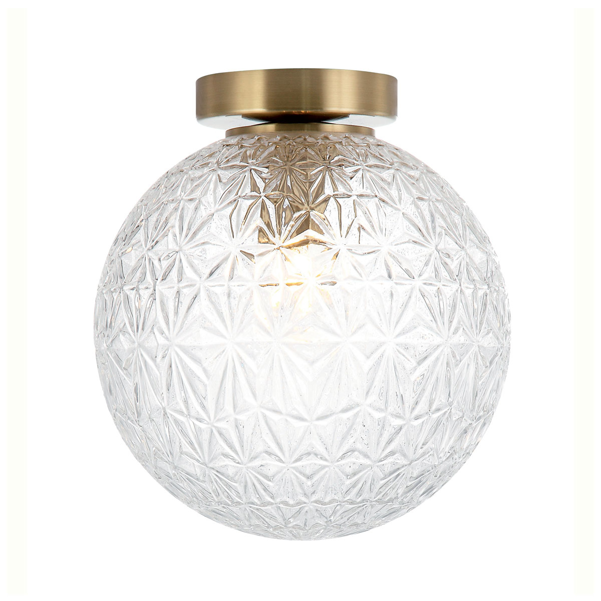 Φωτιστικό οροφής με μοντέρνο στυλ, από την εταιρεία Viokef. Είναι κατασκευασμένο από διάφανο γυαλί με ανάγλυφο σχέδιο και χρυσό μεταλλικό σκελετό. Είναι κατάλληλη για χρήση σε εσωτερικό χώρο με IP20. Τύπος ντουί: 1xE27 και θέση για 1 λαμπτήρα έως 40W (δεν συμπεριλαμβάνονται). Συνδυάστε το με τα υπόλοιπα φωτιστικά της ίδιας συλλογής για ένα ολοκληρωμένο αποτέλεσμα στο χώρο σας.