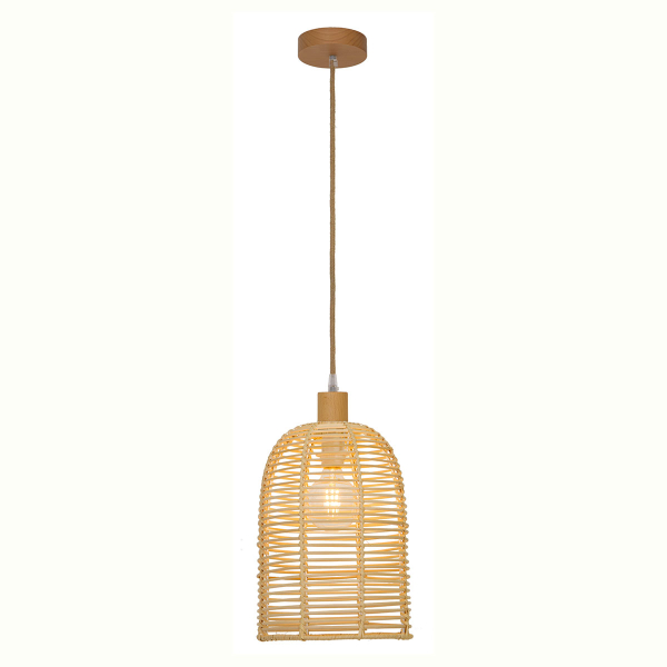 Φωτιστικό οροφής σε σχήμα καμπάνας με έθνικ ύφος, από την εταιρεία Viokef. Είναι κατασκευασμένο από ψάθα ρατάν σε μπεζ χρώμα. Υπάρχει δυνατότητα αυξομείωσης του συνολικού ύψους έως 130εκ. μέσω του καλωδίου ανάρτησης. Διαθέτει μαύρη βάση τοποθέτησης και καλώδιο σε μαύρο χρώμα. Είναι κατάλληλο για εσωτερικό χώρο με IP20. Τύπος ντουί: 1xE27 και θέση για 1 λαμπτήρα έως 70W (δεν συμπεριλαμβάνεται). Συνδυάστε το με τα υπόλοιπα φωτιστικά της ίδιας συλλογής για ένα ολοκληρωμένο αποτέλεσμα στο χώρο σας.