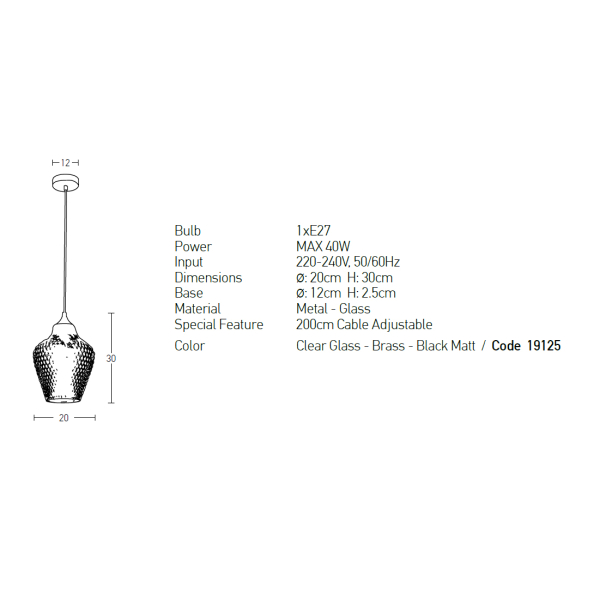 • Τεμάχια: 1 Φωτιστικό Οροφής Μονόφωτο 20εκ.Μx20εκ.Πx30εκ.Υ, Μέγιστο Ύψος 232εκ. & Βάση Φ12.5εκ.x2.5εκ.Υ