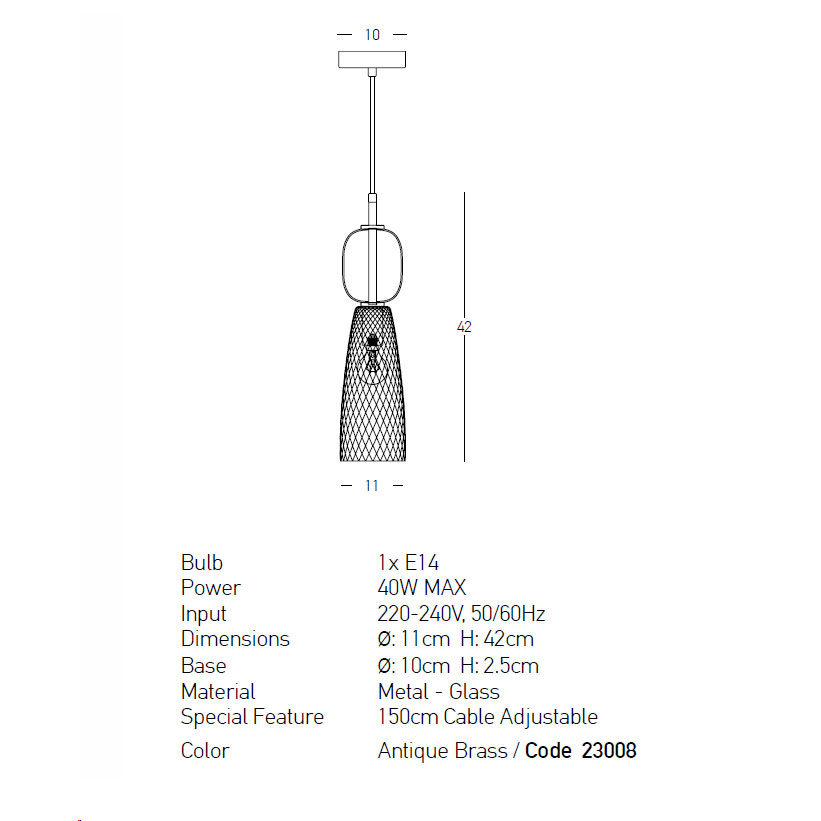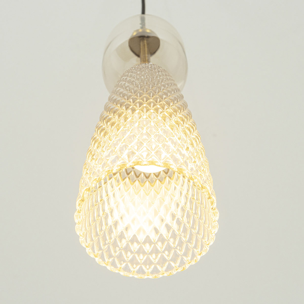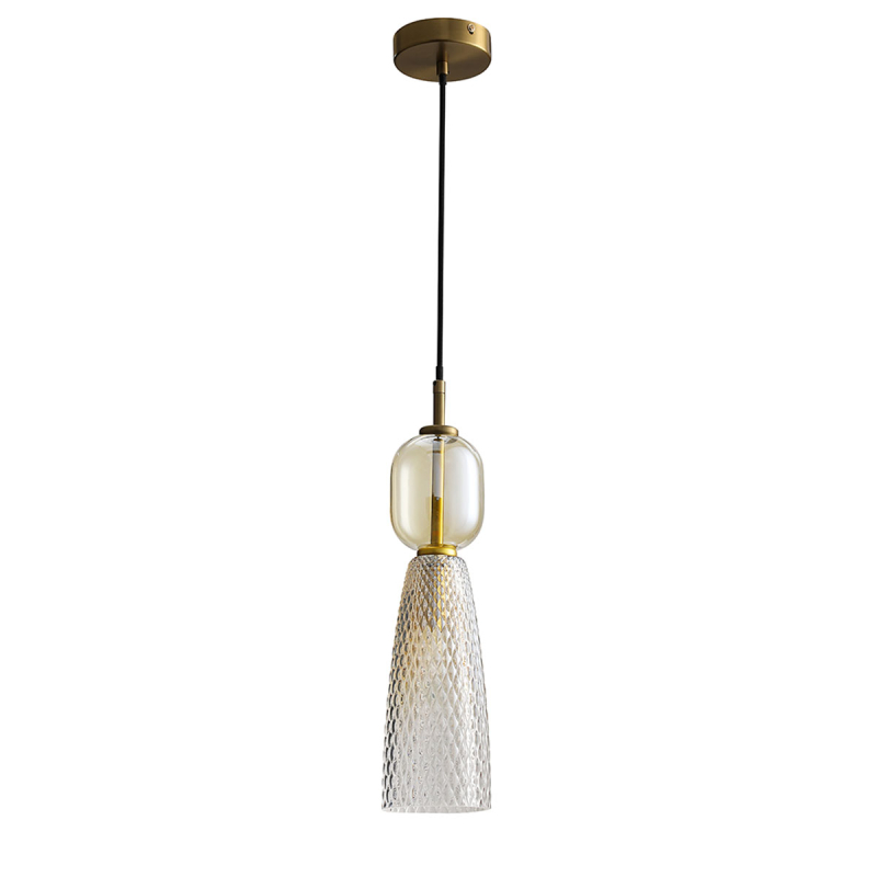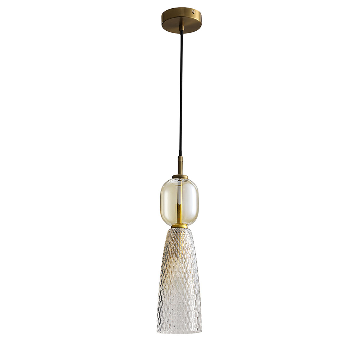 Φωτιστικό οροφής της εταιρείας Zambelis σε vintage στυλ. Διαθέτει 1 γυάλινο καπέλο με ανάγλυφη επιφάνεια και μπρονζέ λεπτομέρειες. Υπάρχει δυνατότητα αυξομείωσης του συνολικού ύψους έως 194εκ. μέσω της ανάρτησης. Τύπος ντουί: 1xE14 και θέση για 1 λαμπτήρα έως 40W (δεν συμπεριλαμβάνεται). Τάση: 220-240Volt.