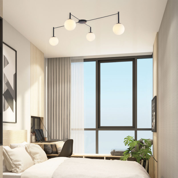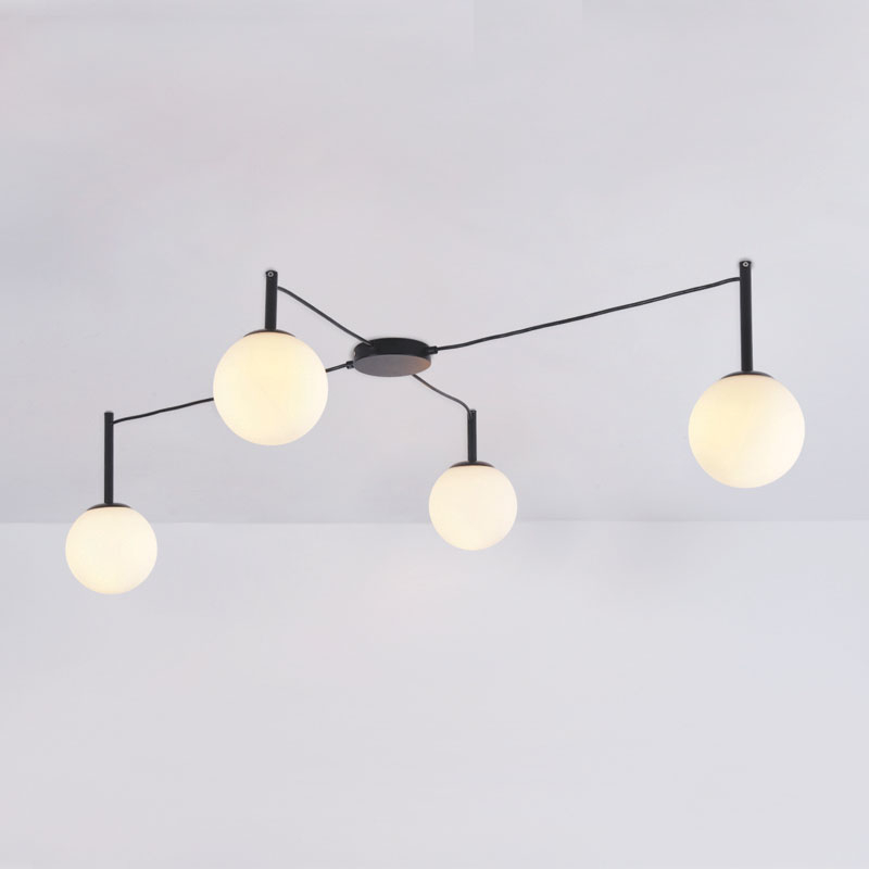 Φωτιστικό οροφής της εταιρείας Aca Decor σε μοντέρνο στυλ. Είναι κατασκευασμένο από μέταλλο σε μαύρο χρώμα. Έχει 4 γυάλινες μπάλες και 4 διαθέσιμα καλώδια. Το μέγεθος και το σχήμα του φωτιστικού μπορεί να προσαρμοστεί μέσω των 4 καλωδίων που κόβονται στο επιθυμητό μήκος. Διαθέτει μαύρη μεταλλική βάση τοποθέτησης. Τύπος ντουί: 4xE14 και θέσεις για 4 λαμπτήρες έως 40W έκαστος (δεν συμπεριλαμβάνονται).