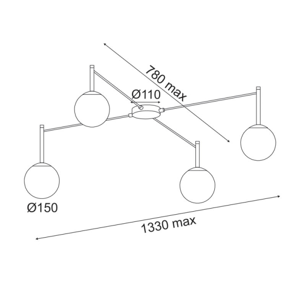 • Τεμάχια: 1 Φωτιστικό Πολύφωτο Με 4 Μπάλες Φ15εκ.Υ & Βάση Φ11εκ.