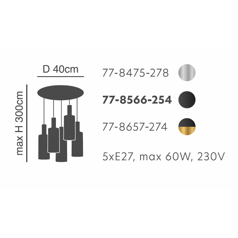 • Τεμάχια: 1 Φωτιστικό Οροφής Πολύφωτο Φ40εκ.x300εκ. Μέγιστο Ύψος
