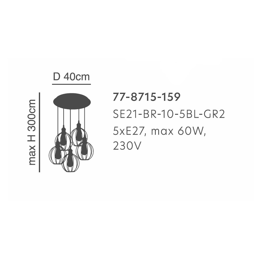 • Τεμάχια: 1 Φωτιστικό Οροφής Με Μεταλλικό Πλέγμα Πολύφωτο Φ40εκ.x300εκ. Μέγιστο Ύψος