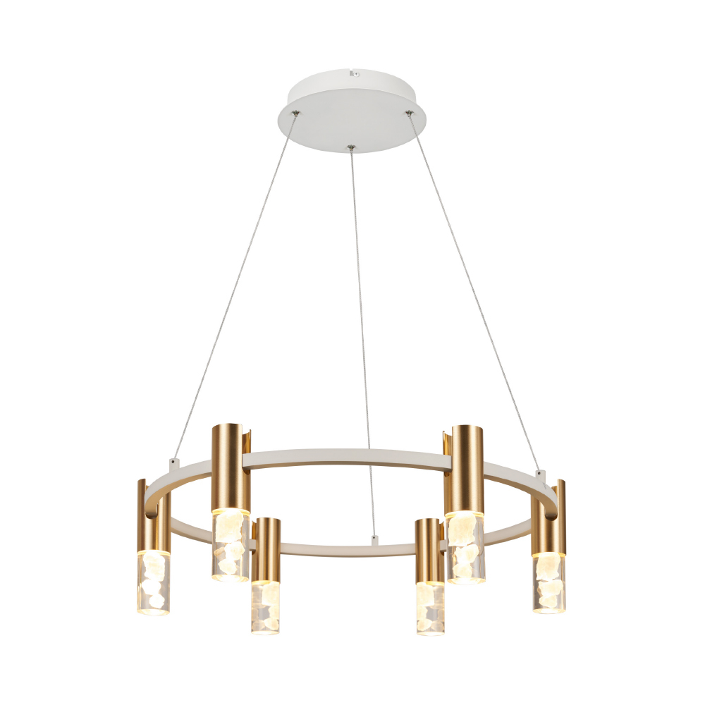Φωτιστικό οροφής πολύφωτο της εταιρείας Aca Decor με μοντέρνο στυλ. Είναι κατασκευασμένο από αλουμίνιο σε λευκό-χρυσό χρώμα. Έχει ακρυλικά στοιχεία σε μπεζ χρώμα. Είναι κατάλληλο για εσωτερικό χώρο με δείκτη προστασίας από υγρά και σκόνη IP20. Περιλαμβάνει μία λάμπα νήματος Led CCT με συνολική ισχύ 43Watt. Διαθέτει 3 θερμοκρασίες χρώματος θερμού λευκού φωτισμού 2700K, 3000K & φυσικού λευκού φωτισμού 4000K. Η επιλογή θερμοκρασίας γίνεται μέσω ενσωματωμένου διακόπτη. Φωτεινότητα 2150Lm. Εγγύηση 5 χρόνια. Μετά το πέρας της εγγύησης, ενδεχόμενες επισκευές πραγματοποιούνται κατόπιν επικοινωνίας με τo Spitishop. Tο προϊόν θα αποσταλεί στον επίσημο προμηθευτή, ο οποίος καθορίζει και το κόστος επισκευής.