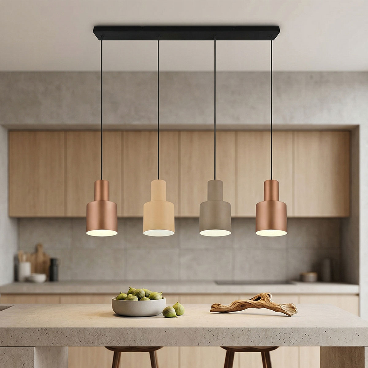 Φωτιστικό οροφής με ράγα της εταιρείας Trio Lighting, σε μοντέρνο στυλ. Ο σκελετός είναι κατασκευασμένος από μεταλλικό υλικό με ματ μαύρο φινίρισμα και διαθέτει 4 μεταλλικά καπέλα σε χάλκινο, μπεζ και καφέ χρώμα. Υπάρχει δυνατότητα αυξομείωσης του συνολικού ύψους έως 150εκ. και ρύθμισης του σχήματος του φωτιστικού στα επιθυμητά μέσω των 4 καλωδίων ανάρτησης. Διαθέτει βάση τοποθέτησης και καλώδια σε μαύρο χρώμα. Ο συνδυασμός των αμπαζούρ σε διαφορετικά χρώματα και ύψη μετατρέπει το φωτιστικό σε ένα μοναδικό στοιχείο στο σπίτι σας. Κατάλληλο για τοποθέτηση σε εσωτερικό χώρο με IP20. Για μοντέρνο και αξιόπιστο φωτισμό, συνιστάται χρήση λαμπτήρα LED. Τύπος ντουί: 4xE27 και θέσεις για 4 λαμπτήρες έως 40W (δεν συμπεριλαμβάνονται). Τάση: 230Volt. Συνδυάστε το με τα υπόλοιπα φωτιστικά της ίδιας συλλογής για ένα ολοκληρωμένο αποτέλεσμα στο χώρο σας. Εγγύηση 2 χρόνια. Μετά το πέρας της εγγύησης, ενδεχόμενες επισκευές πραγματοποιούνται κατόπιν επικοινωνίας με τo Spitishop. Tο προϊόν θα αποσταλεί στον επίσημο προμηθευτή, ο οποίος καθορίζει και το κόστος επισκευής.