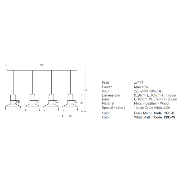• Τεμάχια: 1 Φωτιστικό Οροφής Με Ράγα Πολύφωτο 105εκ.Μx20εκ.Πx22εκ.Υ, Μέγιστο Ύψος 170εκ. & Βάση 105εκ.Μx6.5εκ.Πx2.7εκ.Υ