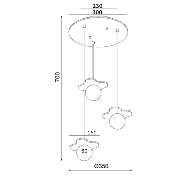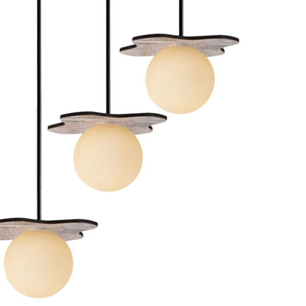 Φωτιστικό οροφής της εταιρείας Aca Decor σε μοντέρνο στυλ. Ο σκελετός και η βάση τοποθέτησης είναι κατασκευασμένα από ξύλο MDF σε παλαιωμένο γκρι χρώμα και λευκές γυάλινες μπάλες. Το καλώδιο είναι κατασκευασμένο από μαύρο PVC. Τύπος ντουί: 3xG9 και θέσεις για τρεις λαμπτήρες έως 4W έκαστος (δεν συμπεριλαμβάνονται).