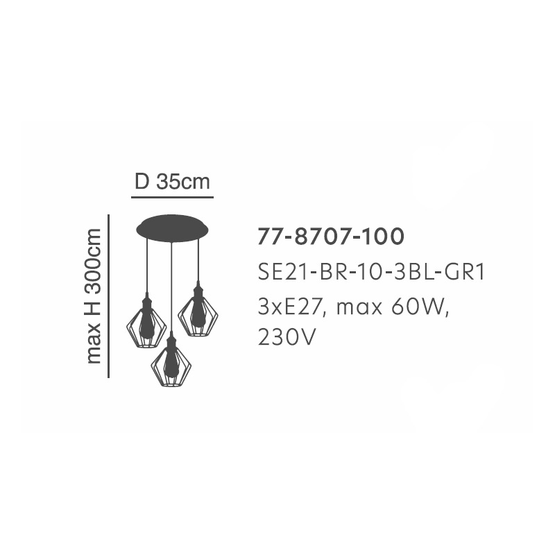 • Τεμάχια: 1 Φωτιστικό Οροφής Με Μεταλλικό Πλέγμα Τρίφωτο Φ35εκ.x300εκ. Μέγιστο Ύψος