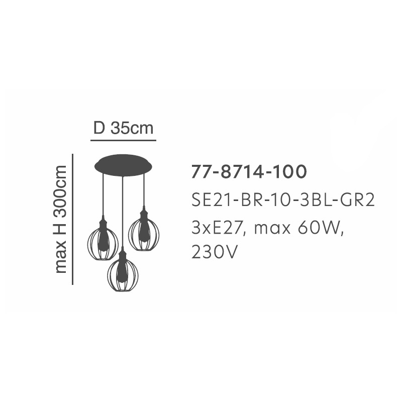 • Τεμάχια: 1 Φωτιστικό Οροφής Με Μεταλλικό Πλέγμα Τρίφωτο Φ35εκ.x300εκ. Μέγιστο Ύψος