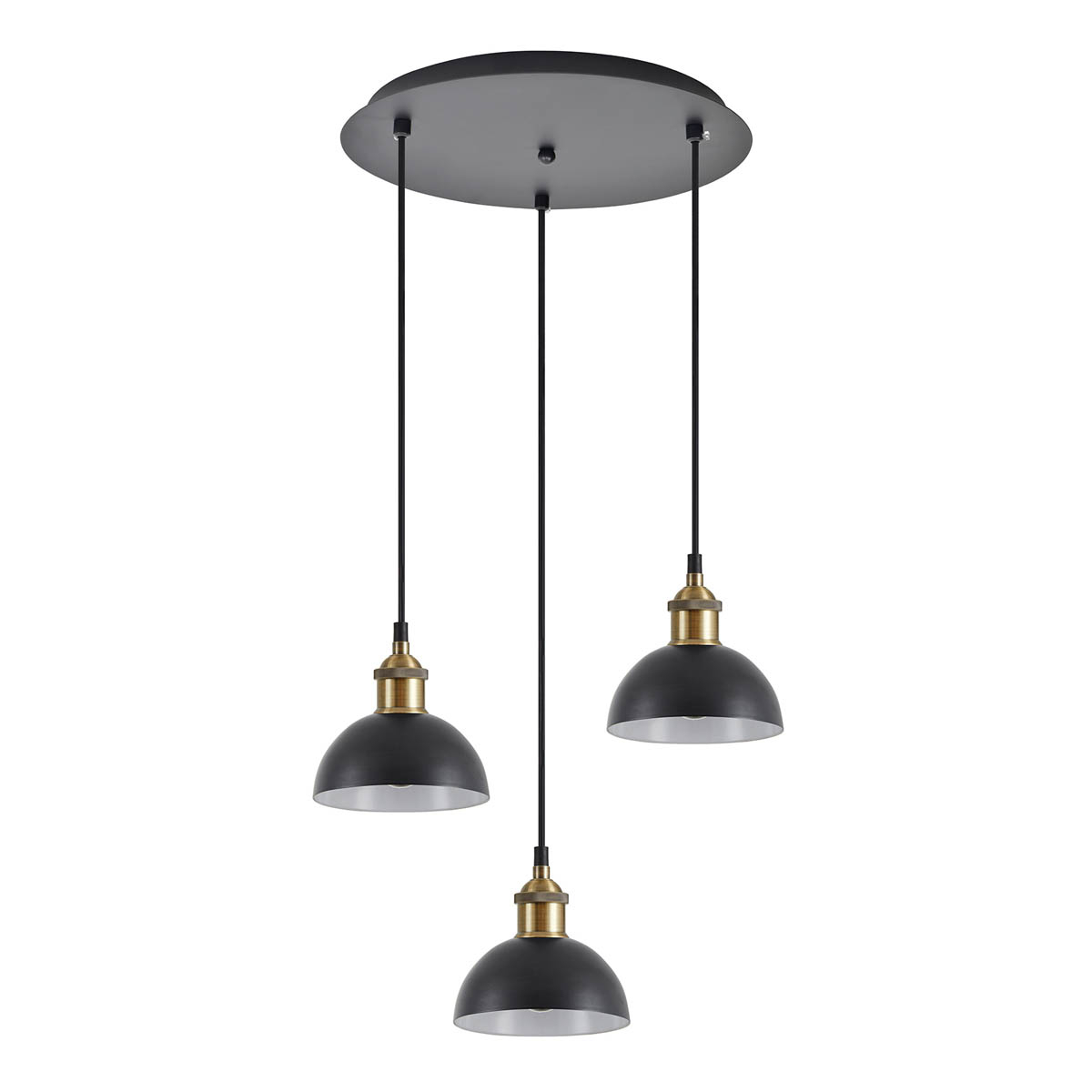 Φωτιστικό οροφής της εταιρείας Homelighting σε μοντέρνο στυλ. Είναι κατασκευασμένο από μέταλλο με 3 μαύρα καπέλα και μπρονζέ ντουί. Μπορείτε να ρυθμίσετε το ύψος και το σχήμα του φωτιστικού μέσω των 3 καλωδίων. Η βάση τοποθέτησης είναι μεταλλική σε μαύρο χρώμα. Τύπος ντουί: 3xE27 και θέσεις για 3 λαμπτήρες έως 60W έκαστος (δεν συμπεριλαμβάνονται). Τάση: 230Volt.