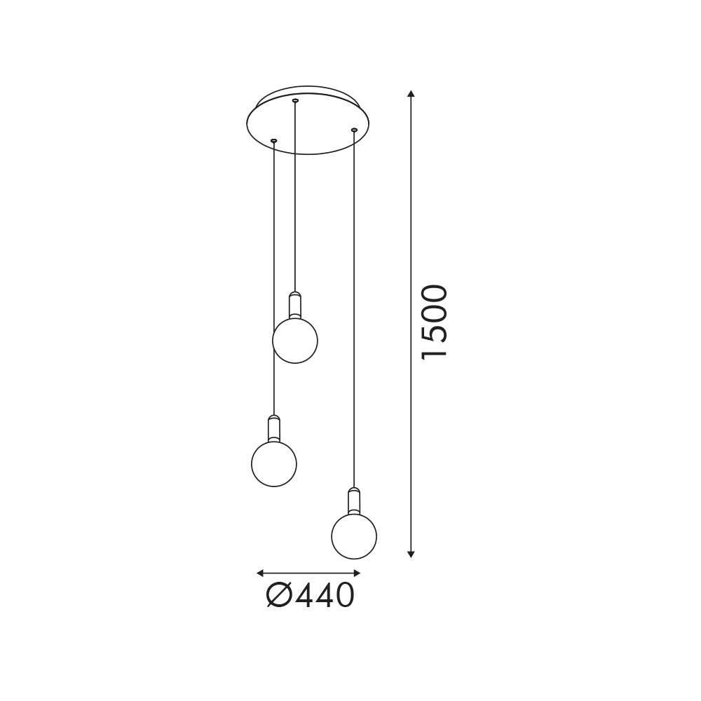 • Τεμάχια: 1 Φωτιστικό Οροφής Τρίφωτο Φ44εκ.x150εκ.Υ