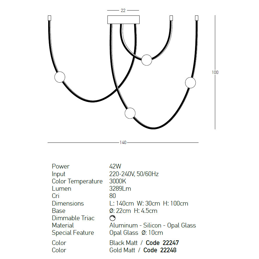 • Τεμάχια: 1 Φωτιστικό Οροφής 140εκ.Μx30εκ.Πx100εκ.Υ & Βάση Φ22εκ.x4.5εκ.Υ