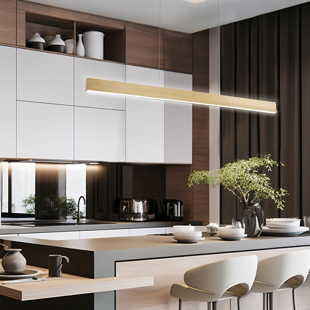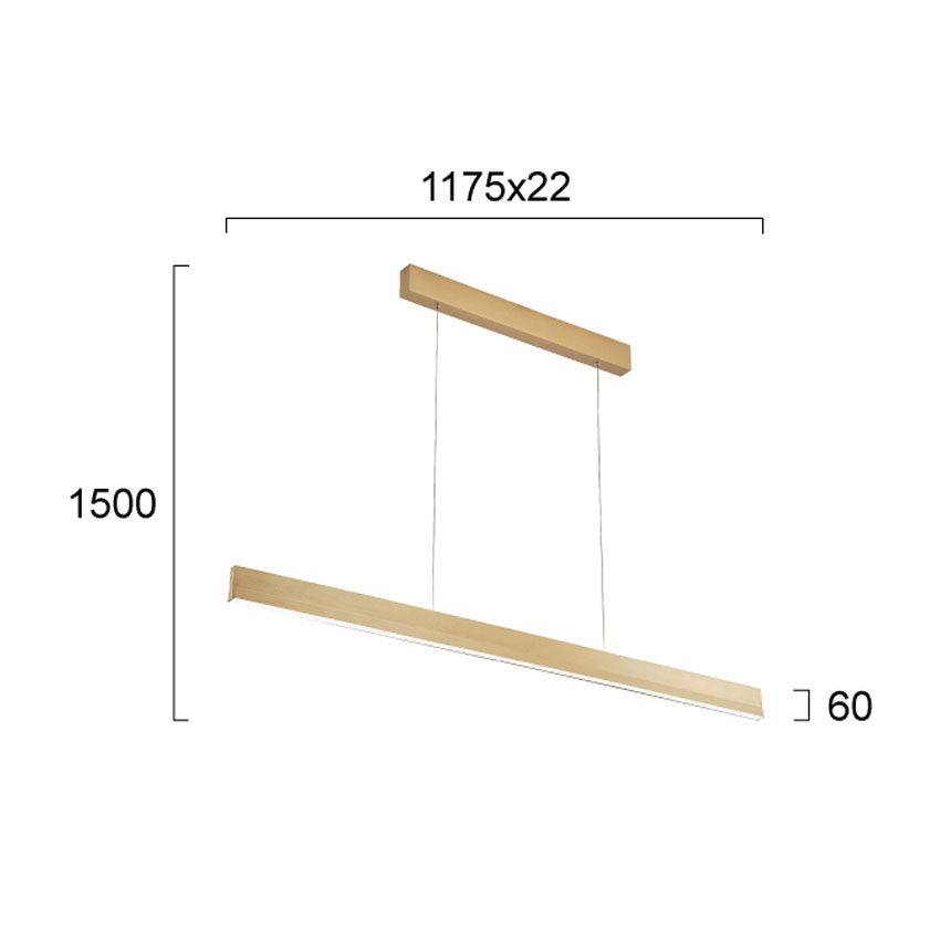 Φωτιστικό οροφής με ράγα και μοντέρνο σχεδιασμό, από την εταιρεία Viokef. Είναι κατασκευασμένο από αλουμίνιο σε χρυσό χρώμα με λεπτομέρειες από σιλικόνη. Υπάρχει δυνατότητα αυξομείωσης του συνολικού ύψους έως 150εκ. μέσω των 2 συρμάτινων αναρτήσεων. Διαθέτει χρυσή βάση τοποθέτησης. Είναι κατάλληλο για εσωτερικό χώρο με IP20. Διαθέτει 1 ενσωματωμένη πλακέτα Led ισχύος 52Watt, λευκού θερμού φωτός (3000K) και φωτεινότητας 2122Lm. Συνδυάστε το με τα υπόλοιπα φωτιστικά της ίδιας συλλογής για ένα ολοκληρωμένο αποτέλεσμα στο χώρο σας.