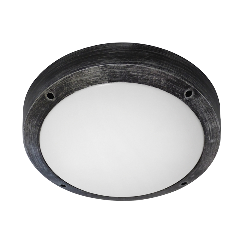 Στρογγυλή πλαφονιέρα εξωτερικού χώρου της εταιρείας Heronia. Διαθέτει προστασία από υγρασία και σκόνη με βαθμό στεγανότητας IP54 και είναι κατάλληλη και για εξωτερικούς χώρους. Μπορεί να τοποθετηθεί σε τοίχο ή οροφή. Σε μίνιμαλ στυλ είναι ιδανική για να φωτίσετε και να διακοσμήσετε τον κήπο και τους εξωτερικούς χώρους του σπιτιού ή του εξοχικού σας. Είναι κατασκευασμένη από πλαστικό υλικό σε γκρι-ασημί απόχρωση με εφέ παλαίωσης και φέρει οπάλ κάλυμμα. Τύπος ντουί: 2xE27 και θέσεις για 2 λαμπτήρες **ΑΠΟΚΛΕΙΣΤΙΚΑ LED έως 10W έκαστος** (δεν συμπεριλαμβάνονται). Δεν περιλαμβάνονται οι βίδες στερέωσης.