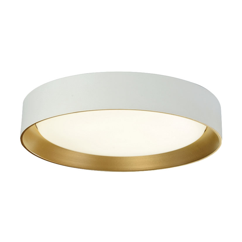 Φωτιστικό πλαφονιέρα με μοντέρνο σχεδιασμό, από την εταιρεία Viokef. Είναι κατασκευασμένο από αλουμίνιο και ακρυλικό υλικό σε λευκό χρώμα με χρυσό εσωτερικό. Είναι κατάλληλο για χρήση σε εσωτερικό χώρο με IP20. Διαθέτει 1 ενσωματωμένη πλακέτα Led ισχύος 24Watt, θερμού λευκού φωτισμού 3000K και φωτεινότητας 1800Lm. *Συνδυάστε το με τα υπόλοιπα φωτιστικά της ίδιας συλλογής για ένα ολοκληρωμένο αποτέλεσμα στο χώρο σας.