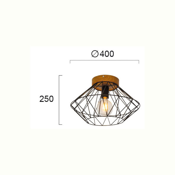 Φωτιστικό πλαφονιέρα με μοντέρνο σχεδιασμό, από την εταιρεία Viokef. Είναι κατασκευασμένο από μαύρο μεταλλικό πλέγμα και έχει βάση από μπεζ-καφέ ξύλο. Είναι κατάλληλο για χρήση σε εσωτερικό χώρο με IP20. Τύπος ντουί: 1xE27 και θέση για 1 λαμπτήρα έως 70W (δεν συμπεριλαμβάνεται). *Συνδυάστε το με τα υπόλοιπα φωτιστικά της ίδιας συλλογής για ένα ολοκληρωμένο αποτέλεσμα στο χώρο σας.