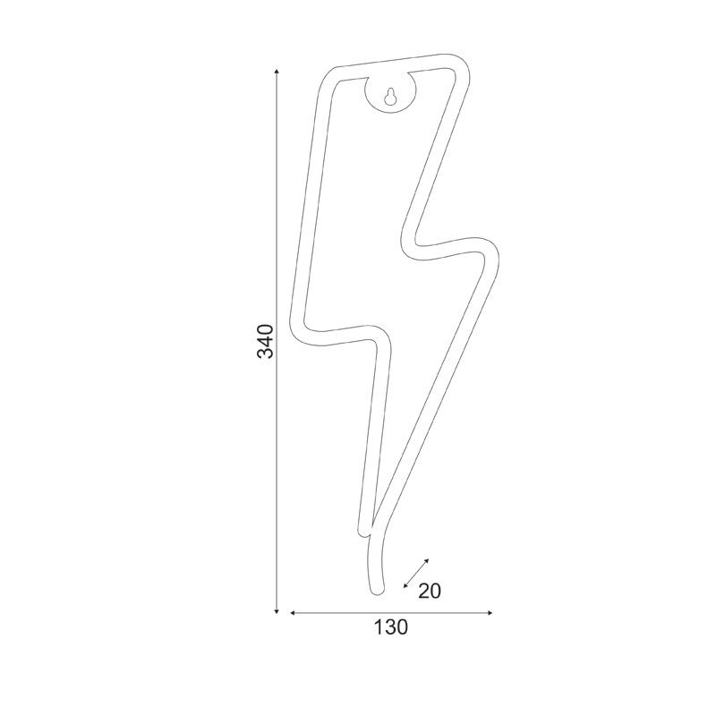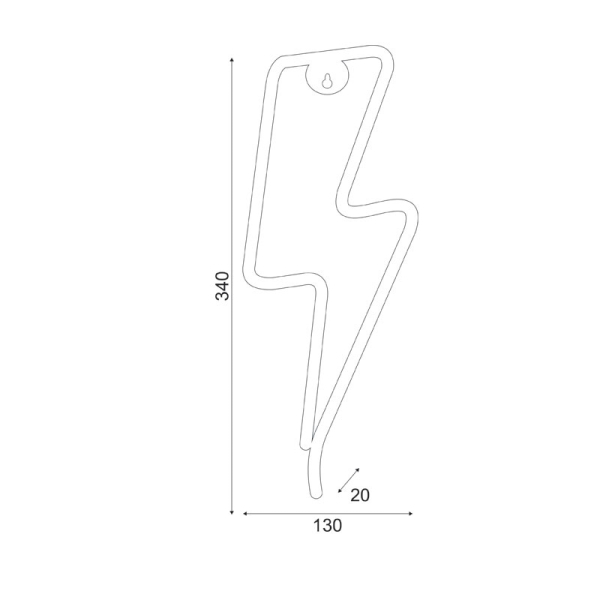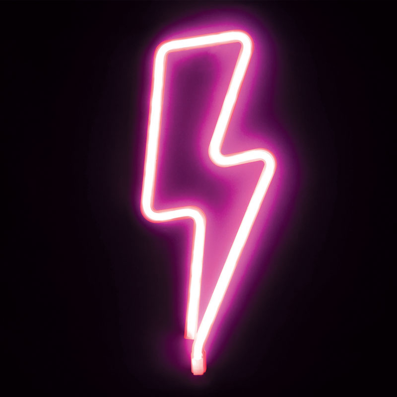 Επιτοίχιο διακοσμητικό Neon Led φωτιστικό της εταιρείας Aca Decor. Έχει μοντέρνο σχήμα κεραυνού σε ροζ χρώμα. Είναι κατασκευασμένο από πλαστικό υλικό και σιλικόνη σε και είναι κατάλληλο για να στολίσει το παιδικό και βρεφικό δωμάτιο. Λειτουργεί με καλώδιο USB ή με 3 μπαταρίες AA LR6, οι οποίες δεν περιλαμβάνονται. Φέρει ενσωματωμένες πλακέτες Led συνολικής ισχύος 2.4Watt.