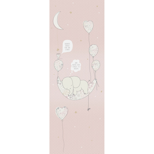 Ενιαία παιδική ταπετσαρία τοίχου από την συλλογή Sofie & Junar της εταιρείας Behang Expresse. Έχει μπεζ σχέδιο με ελεφαντάκι σε ροζ φόντο. Πρόκειται για χάρτινη φωτοταπετσαρία υψηλής ποιότητας και ιταλικής κατασκευής με Vlies - Non Woven υπόστρωμα. Η επιφάνειά της είναι λεία κατασκευασμένη από πολυτελές χαρτί ψηφιακής εκτύπωσης. Αποτελείται από 2 ρολά προκειμένου να ολοκληρωθεί το ενιαίο σχέδιο στο κέντρο της φωτογραφίας. Το υπόλοιπο σχέδιο της φωτογραφίας πωλείται ξεχωριστά (κωδικός INK7626-BEH). Ιδανική για να τοποθετηθεί και στο βρεφικό ή παιδικό δωμάτιο δίνοντας μία παραμυθένια αίσθηση στο χώρο.