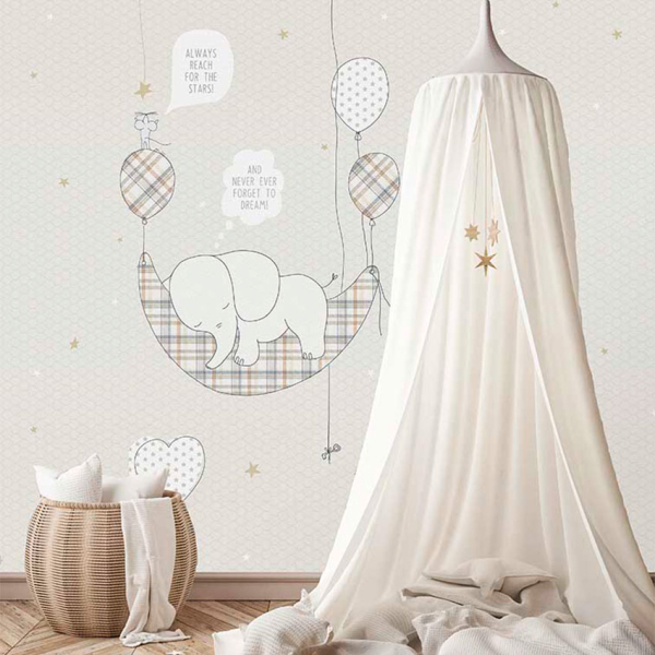 Ενιαία παιδική ταπετσαρία τοίχου από την συλλογή Sofie & Junar της εταιρείας Behang Expresse. Έχει μπεζ σχέδιο με ελεφαντάκι σε γκρι φόντο. Πρόκειται για χάρτινη φωτοταπετσαρία υψηλής ποιότητας και ιταλικής κατασκευής με Vlies - Non Woven υπόστρωμα. Η επιφάνειά της είναι λεία κατασκευασμένη από πολυτελές χαρτί ψηφιακής εκτύπωσης. Αποτελείται από 2 ρολά προκειμένου να ολοκληρωθεί το ενιαίο σχέδιο στο κέντρο της φωτογραφίας. Το υπόλοιπο σχέδιο της φωτογραφίας πωλείται ξεχωριστά (κωδικός INK7628-BEH). Ιδανική για να τοποθετηθεί και στο βρεφικό ή παιδικό δωμάτιο δίνοντας μία παραμυθένια αίσθηση στο χώρο.