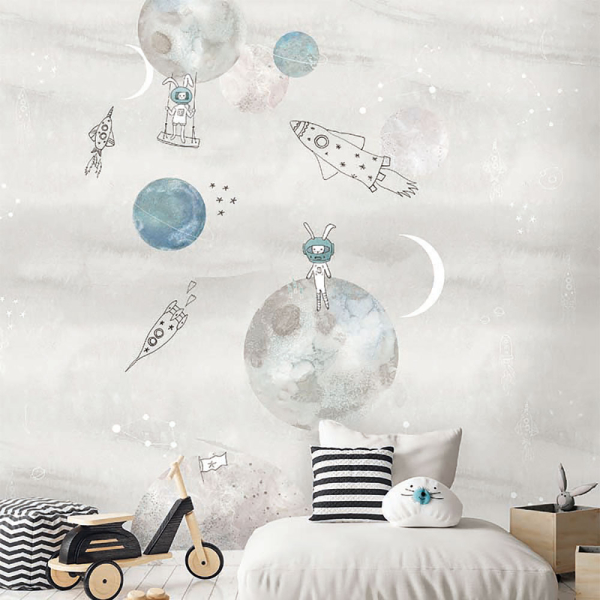 Ενιαία παιδική ταπετσαρία τοίχου από την συλλογή Sofie & Junar της εταιρείας Behang Expresse. Έχει μοντέρνο σχέδιο σε γκρι απόχρωση με λευκές λεπτομέρειες και σχέδιο με θέμα το διάστημα. Πρόκειται για χάρτινη φωτοταπετσαρία υψηλής ποιότητας και ιταλικής κατασκευής με Vlies - Non Woven υπόστρωμα. Η επιφάνειά της είναι λεία κατασκευασμένη από πολυτελές χαρτί ψηφιακής εκτύπωσης. Αποτελείται από 2 ρολά προκειμένου να ολοκληρωθεί το ενιαίο σχέδιο της φωτογραφίας. Το υπόλοιπο σχέδιο στο κέντρο της φωτογραφίας πωλείται ξεχωριστά (κωδικός INK7629-BEH). Ιδανική για να τοποθετηθεί και στο βρεφικό ή παιδικό δωμάτιο δίνοντας μία παραμυθένια αίσθηση στο χώρο.