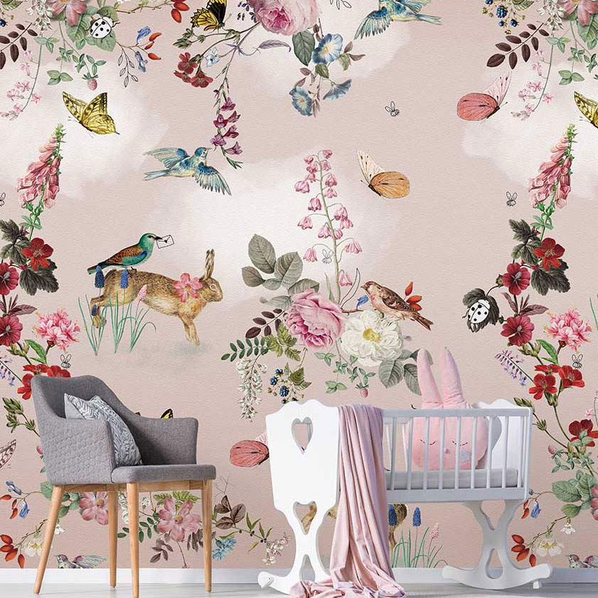 Ενιαία παιδική ταπετσαρία τοίχου από την συλλογή Sofie & Junar της εταιρείας Behang Expresse. Έχει πολύχρωμο σχέδιο με λουλούδια και ζωάκια με ροζ φόντο. Πρόκειται για χάρτινη φωτοταπετσαρία υψηλής ποιότητας και ιταλικής κατασκευής με Vlies - Non Woven υπόστρωμα. Η επιφάνειά της είναι λεία κατασκευασμένη από πολυτελές χαρτί ψηφιακής εκτύπωσης. Αποτελείται από 4 ρολά προκειμένου να ολοκληρωθεί το ενιαίο σχέδιο της φωτογραφίας. Ιδανική για να τοποθετηθεί και στο βρεφικό ή παιδικό δωμάτιο δίνοντας μία παραμυθένια αίσθηση στο χώρο.