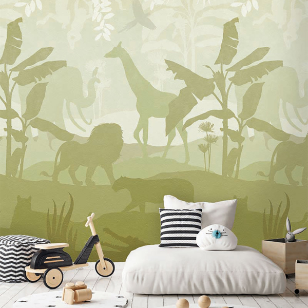 Ενιαία παιδική ταπετσαρία τοίχου από την συλλογή Sofie & Junar της εταιρείας Behang Expresse. Έχει σχέδιο με ζωάκια σε πράσινες αποχρώσεις. Πρόκειται για χάρτινη φωτοταπετσαρία υψηλής ποιότητας και ιταλικής κατασκευής με Vlies - Non Woven υπόστρωμα. Η επιφάνειά της είναι λεία κατασκευασμένη από πολυτελές χαρτί ψηφιακής εκτύπωσης. Αποτελείται από 4 ρολά προκειμένου να ολοκληρωθεί το ενιαίο σχέδιο της φωτογραφίας. Ιδανική για να τοποθετηθεί και στο βρεφικό ή παιδικό δωμάτιο δίνοντας μία παραμυθένια αίσθηση στο χώρο.