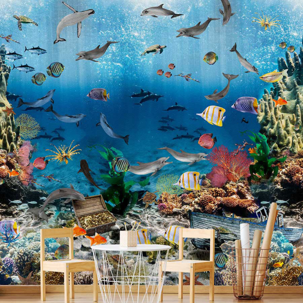Ενιαία παιδική ταπετσαρία τοίχου από την συλλογή Sofie & Junar της εταιρείας Behang Expresse. Έχει σχέδιο με θέμα τον βυθό με πολύχρωμα κοράλλια και ψαράκια. Πρόκειται για χάρτινη φωτοταπετσαρία υψηλής ποιότητας και ιταλικής κατασκευής με Vlies - Non Woven υπόστρωμα. Η επιφάνειά της είναι λεία κατασκευασμένη από πολυτελές χαρτί ψηφιακής εκτύπωσης. Αποτελείται από 6 ρολά προκειμένου να ολοκληρωθεί το ενιαίο σχέδιο της φωτογραφίας. Ιδανική για να τοποθετηθεί και στο βρεφικό ή παιδικό δωμάτιο δίνοντας μία μοντέρνα αίσθηση στο χώρο.