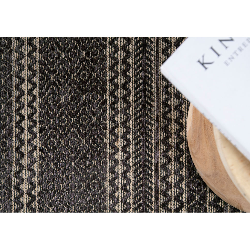 Μηχανοποίητο χαλί 4 εποχών 65x200 από τη συλλογή Gloria Cotton της εταιρείας Royal Carpet. Έχει μπεζ χρώμα με ανθρακί λεπτομέρειες και γεωμετρικό σχέδιο. Είναι κατασκευασμένο από 55% ανακυκλωμένο βαμβάκι, 25% chenille polyester και 20% jute. Το βάρος του χαλιού είναι 2.200gsm και διαθέτει υφαντό υπόστρωμα και χαμηλό πέλος. Ελαφρύ χαλί, ανθεκτικό στην καθημερινή χρήση και εύκολο ως προς τον καθαρισμό του. Είναι αντιστατικό επομένως δεν μαγνητίζονται χνούδια, μικροσωματίδια και σκόνη στην επιφάνειά του, ενώ το σκούπισμα με ηλεκτρική σκούπα είναι εύκολο. Δεν εμπεριέχει επικίνδυνες για τον ανθρώπινο οργανισμό αλλεργιογόνες ή χημικές βλαβερές ουσίες. Τα χαλιά της εταιρείας Royal Carpet είναι φιλικά προς την υγεία και το περιβάλλον, καθώς είναι υποαλλεργικά και οικολογικά.