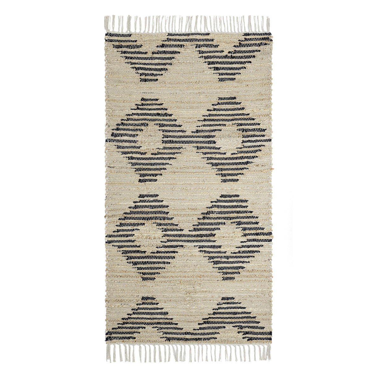 Xαλί διαδρόμου από την εταιρεία Nima.Έχει μπεζ χρώμα, με μαύρες λεπτομέρειες και έθνικ σχέδιο. Είναι κατασκευασμένο από 100% βαμβάκι και διαθέτει μακριά κρόσια στο τελείωμα. Είναι ιδανικό για τοποθέτηση σε οποιονδήποτε χώρο του σπιτιού σας όλο τον χρόνο.