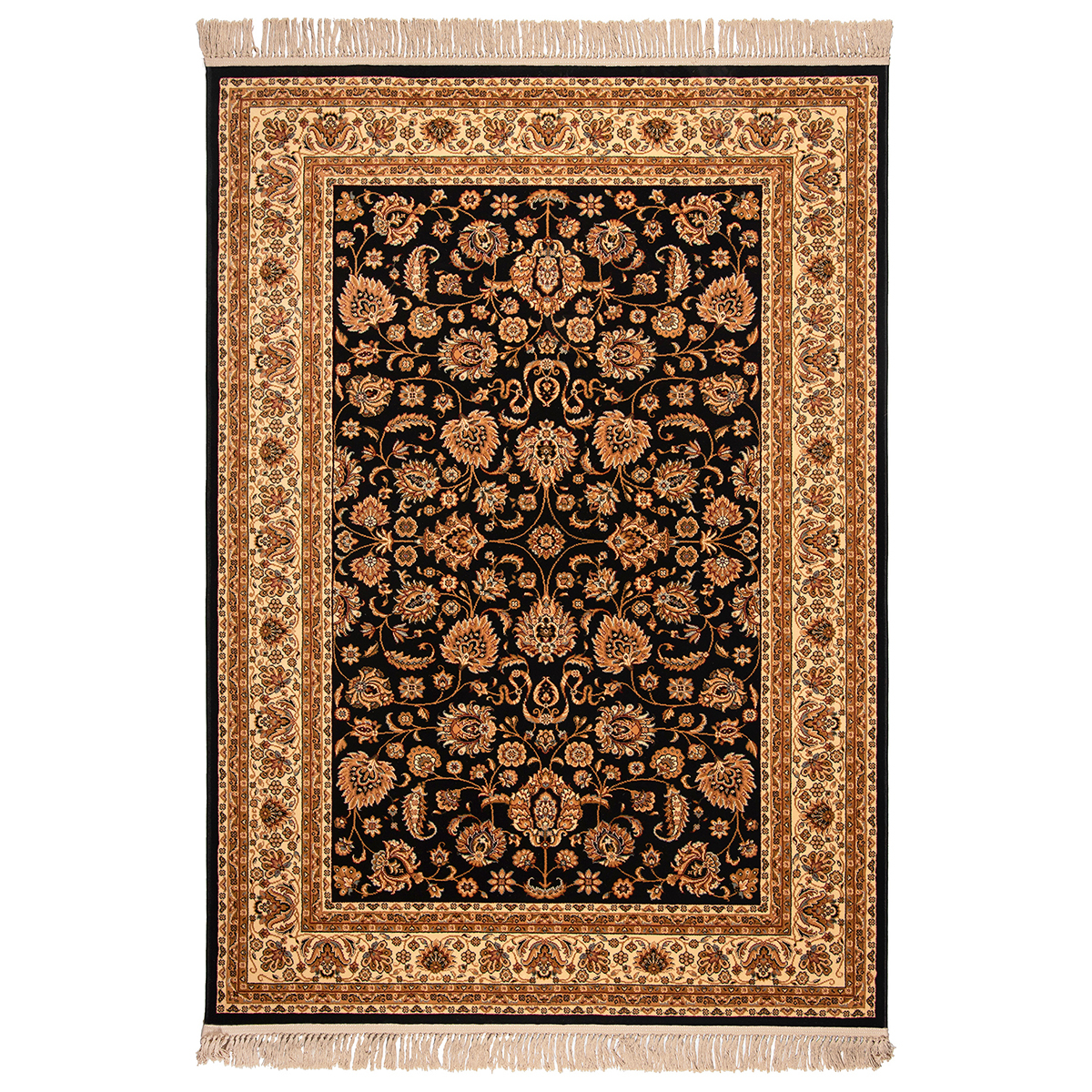 Χαλί μηχανής 80x140 από τη συλλογή Isfahan της εταιρείας Βιοκαρπέτ με βάση σε μαύρη και μπεζ αποχρώσεις, με μπορντώ και γκρι λεπτομέρειες. Στιβαρό χαλί με καλοδουλεμένη μίξη χρωμάτων και εντυπωσιακό κλασικό σχέδιο, που προσδίδει μία πινελιά πολυτέλειας. Μπορεί να συνδυαστεί με όλα τα στυλ διακόσμησης και είναι ιδανικό για όλους τους χώρους του σπιτιού, αναβαθμίζοντας την αισθητική τους. Είναι κατασκευασμένο με ανεξίτηλα νήματα από 100% πολυπροπυλένιο. Το βάρος του χαλιού είναι 2.700gsm, ενώ η πυκνότητά του ανέρχεται στους 1.000.000 κόμπους/τ.μ. Φέρει περίτεχνο κρόσσι σε μπεζ απόχρωση. Η απαλή επιφάνεια του χαλιού σε συνδυασμό με το πέλος ύψους 11mm, εξασφαλίζουν μία μοναδική αίσθηση στο πάτημα. Διαθέτει υφαντό υπόστρωμα, που το καθιστά ιδιαίτερα ανθεκτικό. Είναι αντιστατικό επομένως δεν μαγνητίζονται χνούδια, μικροσωματίδια και σκόνη στην επιφάνεια του χαλιού, ενώ το σκούπισμα με ηλεκτρική σκούπα είναι εύκολο και αποτελεσματικό. Τα χαλιά της συλλογής Isfahan είναι υποαλλεργικά και φιλικά προς την υγεία και το περιβάλλον. Φέρουν την υπογραφή της εταιρείας Βιοκαρπέτ για άριστη ποιότητα και αξιοπιστία. *Είναι κατάλληλο για ενδοδαπέδια θέρμανση*