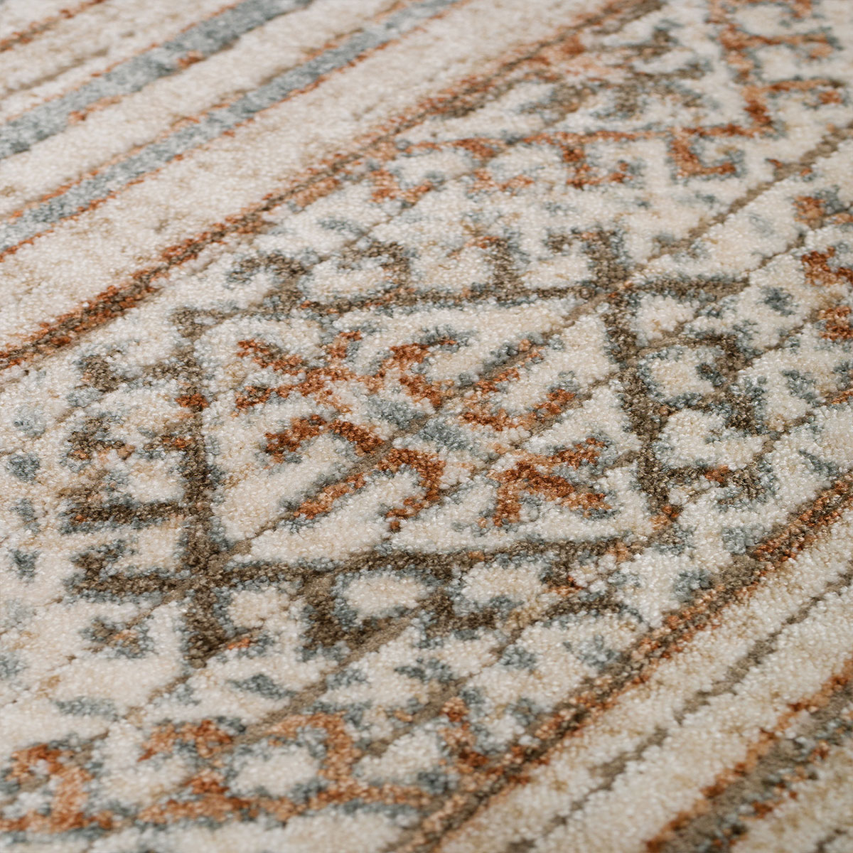 Χαλί μηχανής 80x220 από τη συλλογή Gaudi της εταιρείας Βιοκαρπέτ σε μπεζ-καφέ χρώμα με έθνικ σχέδιο. Μπορεί να συνδυαστεί με όλα τα στυλ διακόσμησης και είναι ιδανικό για όλους τους χώρους του σπιτιού, αναβαθμίζοντας την αισθητική τους. Είναι κατασκευασμένο με ανεξίτηλα νήματα εξαιρετικής ποιότητας από 15% πολυπροπυλένιο και 85% polyester. Το βάρος του χαλιού είναι 2.170gsm, ενώ η πυκνότητά του ανέρχεται στους 672.000 κόμπους/τ.μ. Η απαλή επιφάνεια του χαλιού σε συνδυασμό με το πέλος ύψους 8mm, εξασφαλίζουν μία μοναδική αίσθηση στο πάτημα. Διαθέτει υφαντό υπόστρωμα, που το καθιστά ιδιαίτερα ανθεκτικό. Είναι αντιστατικό επομένως δεν μαγνητίζονται χνούδια, μικροσωματίδια και σκόνη στην επιφάνεια του χαλιού, ενώ το σκούπισμα με ηλεκτρική σκούπα είναι εύκολο και αποτελεσματικό. Τα χαλιά της συλλογής Gaudi είναι υποαλλεργικά και φιλικά προς την υγεία και το περιβάλλον. Φέρουν την υπογραφή της εταιρείας Βιοκαρπέτ για άριστη ποιότητα και αξιοπιστία. *Είναι κατάλληλο για ενδοδαπέδια θέρμανση*