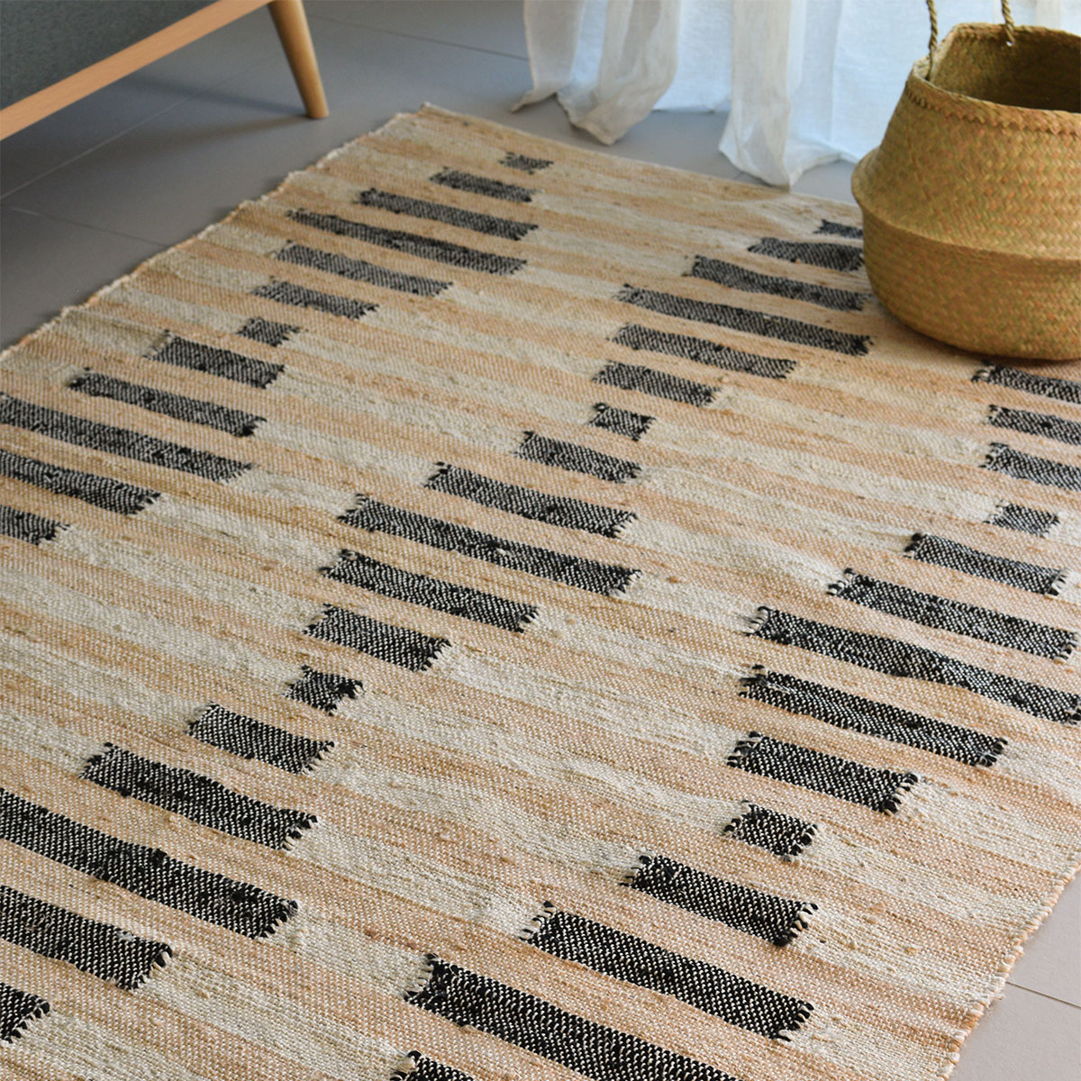 Καλοκαιρινό χαλί 140x200 από την εταιρεία Ravelia με μοντέρνο σχέδιο. Είναι ψάθινο, κατασκευασμένο από 100% jute σε μπεζ χρώμα με εκρού και μαύρες λεπτομέρειες. Η σύνθεση του το κάνει ελαφρύ και ιδανικό για όλους τους μήνες του χρόνου. Αποτελεί ιδανική λύση ως καλοκαιρινό χαλί για όλους τους χώρους του σπιτιού, αναβαθμίζοντας την αισθητική τους. Συνδυάστε το με τα υπόλοιπα είδη του ίδιου σχεδίου για ένα ολοκληρωμένο αποτέλεσμα.