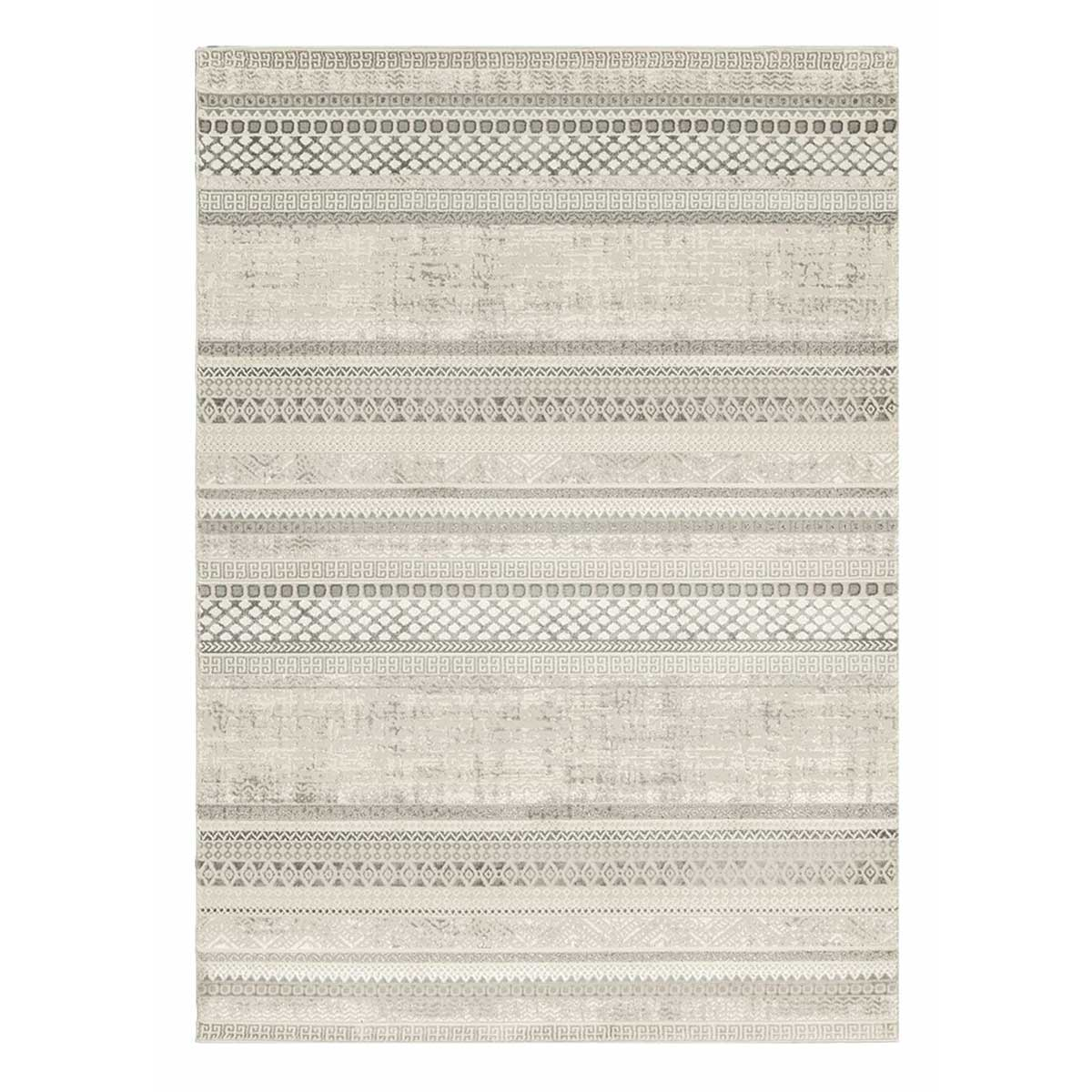 Χαλί μηχανής 133x190 από τη συλλογή Jade της εταιρείας New Plan, σε εκρού χρώμα με γκρι λεπτομέρειες. Ανθεκτικό χαλί με μοντέρνο σχέδιο. Η ομαλή χρωματική διαβάθμιση σε συνδυασμό με το ιδιαίτερο νήμα προσδίδουν μία πινελιά πολυτέλειας. Είναι κατασκευασμένο με εξαιρετικής ποιότητας ανεξίτηλα νήματα από 70% heatset πολυπροπυλένιο και 30% shrink polyester. Tο βάρος του χαλιού είναι 2.350gsm, ενώ η πυκνότητά του ανέρχεται στους 400.000 κόμπους/τ.μ. Η απαλή επιφάνεια του χαλιού σε συνδυασμό με το πέλος ύψους 11mm, εξασφαλίζουν μία μοναδική αίσθηση στο πάτημα. Το υπόστρωμα του χαλιού είναι υφαντό. Είναι αντιστατικό επομένως δεν μαγνητίζονται χνούδια, μικροσωματίδια και σκόνη στην επιφάνεια του χαλιού. Δεν εμπεριέχει επικίνδυνες για τον ανθρώπινο οργανισμό αλλεργιογόνες ή χημικές βλαβερές ουσίες. Διαθέτει πιστοποίηση του Γερμανικού ινστιτούτου Oeko-Tex Standard 100 και πιστοποίηση ISO9001. Τα χαλιά της εταιρείας New Plan είναι οικολογικά και υποαλλεργικά. **Η κοπή του χαλιού γίνεται σε τυχαίο σημείο και το τελικό σχέδιο ενδέχεται να διαφέρει από την εικονιζόμενη φωτογραφία.**