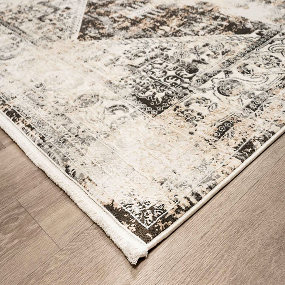 Χαλί μηχανής 160x230 από τη σειρά Bellagio της εταιρείας New Plan, σε μπεζ απόχρωση με καφέ και γκρι λεπτομέρειες. Ανθεκτικό χαλί με κλασικό σχέδιο. Η ομαλή χρωματική διαβάθμιση σε συνδυασμό με το ιδιαίτερο νήμα προσδίδουν μία πινελιά πολυτέλειας. Είναι κατασκευασμένο με γυαλιστερά νήματα εξαιρετικής ποιότητας από 100% polyester. Tο βάρος του χαλιού είναι 2.050gsm, ενώ η πυκνότητά του ανέρχεται στους 768.000 κόμπους/τ.μ. Η απαλή επιφάνεια του χαλιού σε συνδυασμό με το πέλος ύψους 9mm, εξασφαλίζουν μία μοναδική αίσθηση στο πάτημα. Το υπόστρωμα του χαλιού είναι υφαντό. Είναι αντιστατικό άρα το σκούπισμα με ηλεκτρική σκούπα είναι εύκολο και αποτελεσματικό. Τα χαλιά της εταιρείας New Plan είναι οικολογικά και υποαλλεργικά.