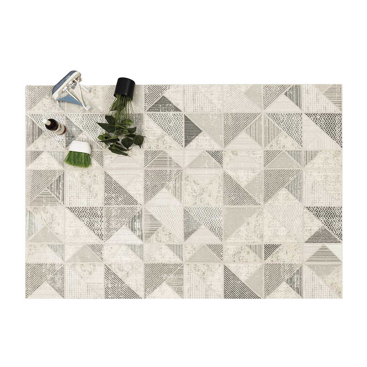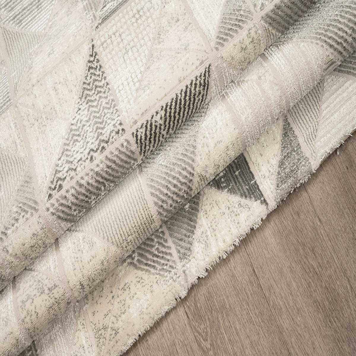 Χαλί μηχανής 160x230 από τη συλλογή Jade της εταιρείας New Plan, σε γκρι απόχρωση με εκρού και καφέ λεπτομέρειες. Ανθεκτικό χαλί με γεωμετρικό σχέδιο. Η ομαλή χρωματική διαβάθμιση σε συνδυασμό με το ιδιαίτερο νήμα προσδίδουν μία πινελιά πολυτέλειας. Είναι κατασκευασμένο με εξαιρετικής ποιότητας ανεξίτηλα νήματα από 70% heatset πολυπροπυλένιο και 30% shrink polyester. Tο βάρος του χαλιού είναι 2.350gsm, ενώ η πυκνότητά του ανέρχεται στους 400.000 κόμπους/τ.μ. Η απαλή επιφάνεια του χαλιού σε συνδυασμό με το πέλος ύψους 11mm, εξασφαλίζουν μία μοναδική αίσθηση στο πάτημα. Το υπόστρωμα του χαλιού είναι υφαντό. Είναι αντιστατικό επομένως δεν μαγνητίζονται χνούδια, μικροσωματίδια και σκόνη στην επιφάνεια του χαλιού. Δεν εμπεριέχει επικίνδυνες για τον ανθρώπινο οργανισμό αλλεργιογόνες ή χημικές βλαβερές ουσίες. Διαθέτει πιστοποίηση του Γερμανικού ινστιτούτου Oeko-Tex Standard 100 και πιστοποίηση ISO9001. Τα χαλιά της εταιρείας New Plan είναι οικολογικά και υποαλλεργικά. **Η κοπή του χαλιού γίνεται σε τυχαίο σημείο και το τελικό σχέδιο ενδέχεται να διαφέρει από την εικονιζόμενη φωτογραφία.**