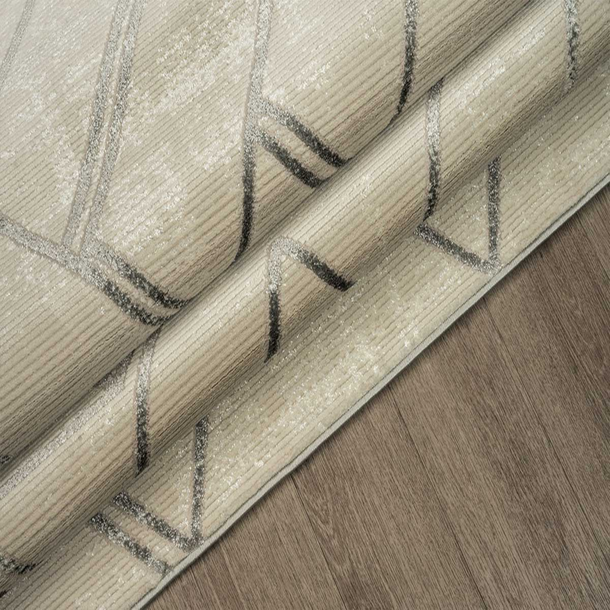 Χαλί μηχανής 160x230 από τη συλλογή Jade της εταιρείας New Plan, σε γκρι απόχρωση με εκρού και καφέ λεπτομέρειες. Ανθεκτικό χαλί με γεωμετρικό σχέδιο. Η ομαλή χρωματική διαβάθμιση σε συνδυασμό με το ιδιαίτερο νήμα προσδίδουν μία πινελιά πολυτέλειας. Είναι κατασκευασμένο με εξαιρετικής ποιότητας ανεξίτηλα νήματα από 70% heatset πολυπροπυλένιο και 30% shrink polyester. Tο βάρος του χαλιού είναι 2.350gsm, ενώ η πυκνότητά του ανέρχεται στους 400.000 κόμπους/τ.μ. Η απαλή επιφάνεια του χαλιού σε συνδυασμό με το πέλος ύψους 11mm, εξασφαλίζουν μία μοναδική αίσθηση στο πάτημα. Το υπόστρωμα του χαλιού είναι υφαντό. Είναι αντιστατικό επομένως δεν μαγνητίζονται χνούδια, μικροσωματίδια και σκόνη στην επιφάνεια του χαλιού. Δεν εμπεριέχει επικίνδυνες για τον ανθρώπινο οργανισμό αλλεργιογόνες ή χημικές βλαβερές ουσίες. Διαθέτει πιστοποίηση του Γερμανικού ινστιτούτου Oeko-Tex Standard 100 και πιστοποίηση ISO9001. Τα χαλιά της εταιρείας New Plan είναι οικολογικά και υποαλλεργικά. **Η κοπή του χαλιού γίνεται σε τυχαίο σημείο και το τελικό σχέδιο ενδέχεται να διαφέρει από την εικονιζόμενη φωτογραφία.**
