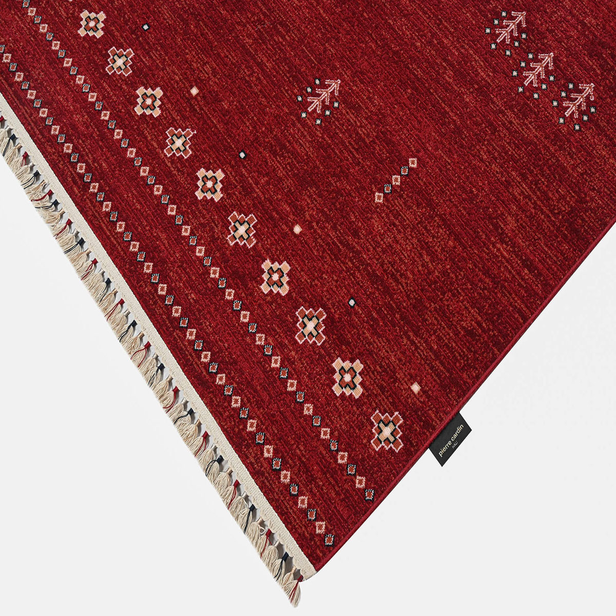 Χαλί μηχανής 160x230 από την συλλογή Vienna της εταιρείας Pierre Cardin σε μπορντώ φόντο με μπεζ λεπτομέρειες και έθνικ σχέδιο. Μπορεί να τοποθετηθεί σε όλους τους χώρους του σπιτιού, αναβαθμίζοντας την αισθητική τους, με μία boho πινελιά. Είναι κατασκευασμένο από αγνό μαλλί και ακρυλικό νήμα. Το χαλί έχει βάρος 2.000gsm και πυκνότητα 320.000 κόμπους/τ.μ. Το πέλος ύψους 10mm προσφέρει μία ευχάριστη αίσθηση στο πάτημα. Διαθέτει υφαντό βαμβακερό υπόστρωμα. Διαθέτει χειροποίητο κρόσσι. Είναι αντιστατικό επομένως δεν μαγνητίζονται χνούδια, μικροσωματίδια και σκόνη στην επιφάνειά του, ενώ το σκούπισμα με ηλεκτρική σκούπα είναι εύκολο και αποτελεσματικό. Ο καθαρισμός του χαλιού είναι εύκολος, καθώς είναι πλενόμενο σύμφωνα πάντα με τις οδηγίες του προμηθευτή. Τα χαλιά της εταιρείας Pierre Cardin είναι υποαλλεργικά και αντιβακτηριδιακά. Έχουν ελεγχθεί για τον οικολογικό τους χαρακτήρα καθώς και για την πλήρη απουσία επιβλαβών για την υγεία ουσιών. Φέρουν τις πιστοποιήσεις Standard 100 Oeko-Textiles και ISO 9001. Πρόκειται για προϊόντα ασφαλή για την υγεία και φιλικά προς το περιβάλλον και τα κατοικίδια.