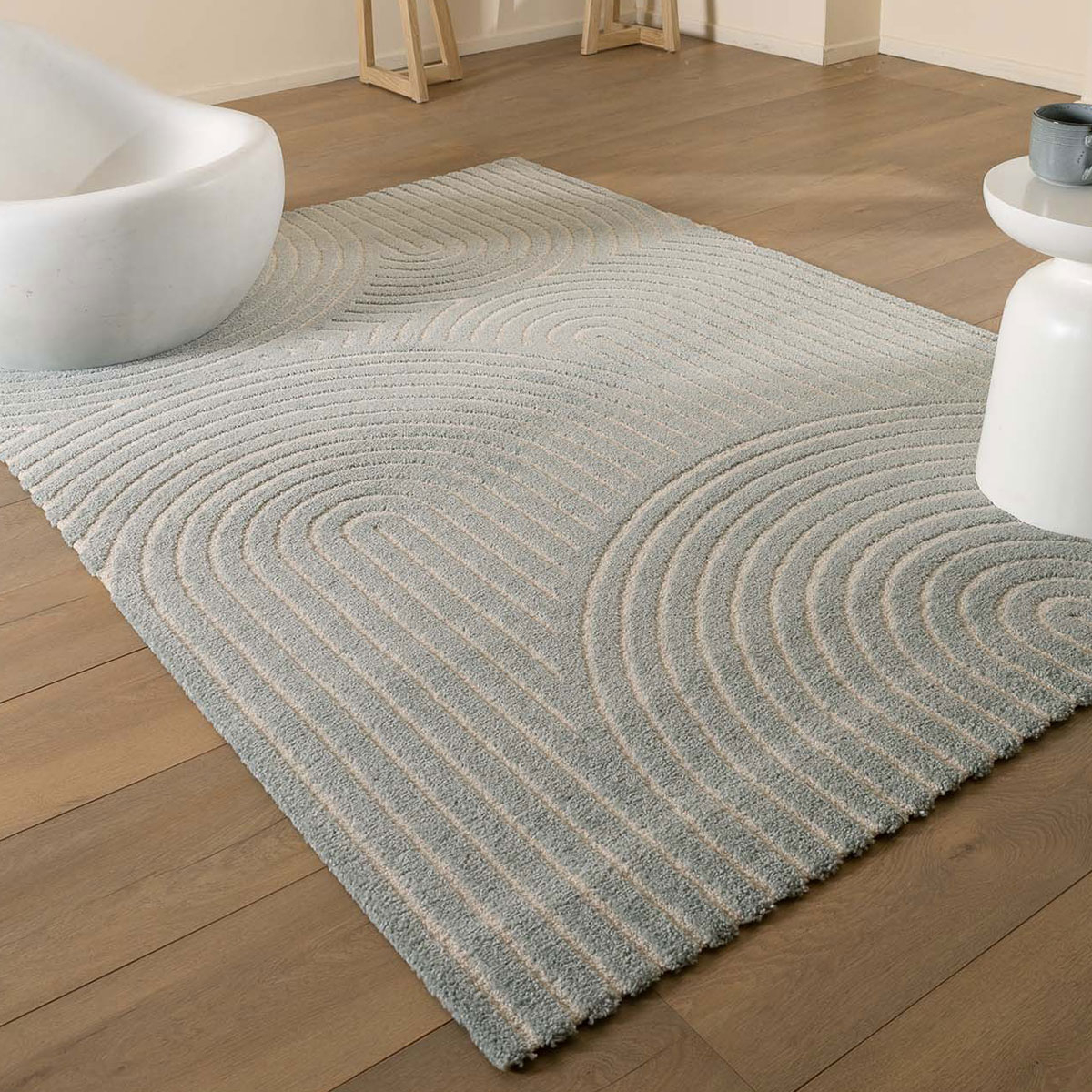 Χαλί μηχανής 160x230 από τη σειρά Cocoon της εταιρείας Royal Carpet σε γαλάζιο χρώμα με γεωμετρικό σχέδιο. Απαλό αλλά ανθεκτικό χαλί με καλοδουλεμένη μίξη χρωμάτων. Μπορεί να τοποθετηθεί σε όλους τους χώρους του σπιτιού αναβαθμίζοντας την αισθητική τους. Η επιφάνειά του είναι ανάγλυφη. Είναι κατασκευασμένο από εξαιρετικής ποιότητας μαλακά και ανεξίτηλα νήματα από πολυπροπυλένιο και polyester. Το βάρος του είναι 1.750gsm ενώ η πυκνότητά του ανέρχεται στους 193.844 κόμπους/τ.μ. Η απαλή επιφάνεια του χαλιού σε συνδυασμό με το πέλος ύψους 14mm, δημιουργούν ένα εντυπωσιακό χαλί. Είναι αντιστατικό επομένως δεν μαγνητίζονται χνούδια, μικροσωματίδια και σκόνη στην επιφάνεια του χαλιού. Δεν εμπεριέχει επικίνδυνες για τον ανθρώπινο οργανισμό αλλεργιογόνες ή χημικές βλαβερές ουσίες. Τα χαλιά Royal Carpet είναι οικολογικά και φιλικά προς την υγεία.