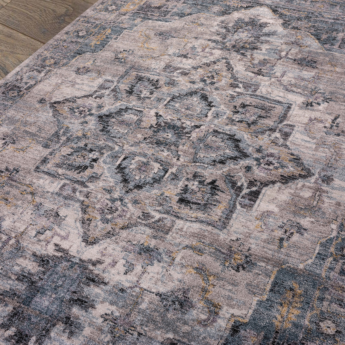 Χαλί μηχανής από την συλλογή Ziegler της εταιρείας Polcarpet σε γκρι-μπλε αποχρώσεις. Πρόκειται για πρακτικό χαλί με εντυπωσιακό έθνικ σχέδιο. Μπορεί να τοποθετηθεί σε όλους τους χώρους του σπιτιού, αναβαθμίζοντας την αισθητική τους, καθώς προσδίδει μία πινελιά πολυτέλειας. Είναι κατασκευασμένο με ανεξίτηλα νήματα σύνθεσης heatset πολυπροπυλένιο. Το χαλί έχει βάρος 2.250gsm και πυκνότητα 320.000 κόμπους/τ.μ. Το πέλος ύψους 12mm σας προσφέρει μία ευχάριστη αίσθηση στο πάτημα. Διαθέτει υφαντό βαμβακερό υπόστρωμα. Έχει κοντό κρόσσι σε εκρού απόχρωση. Είναι αντιστατικό επομένως δεν μαγνητίζονται χνούδια, μικροσωματίδια και σκόνη στην επιφάνειά του, ενώ το σκούπισμα με ηλεκτρική σκούπα είναι εύκολο και αποτελεσματικό. Ο καθαρισμός του χαλιού είναι εύκολος, καθώς είναι πλενόμενο σύμφωνα πάντα με τις οδηγίες του προμηθευτή. Τα χαλιά της εταιρείας Polcarpet είναι υποαλλεργικά και αντιβακτηριδιακά. Έχουν ελεγχθεί για τον οικολογικό τους χαρακτήρα καθώς και για την πλήρη απουσία επιβλαβών για την υγεία ουσιών. Φέρουν τις πιστοποιήσεις Standard 100 Oeko-Textiles και ISO 9001. Πρόκειται για προϊόντα ασφαλή για την υγεία και φιλικά προς το περιβάλλον και τα κατοικίδια.