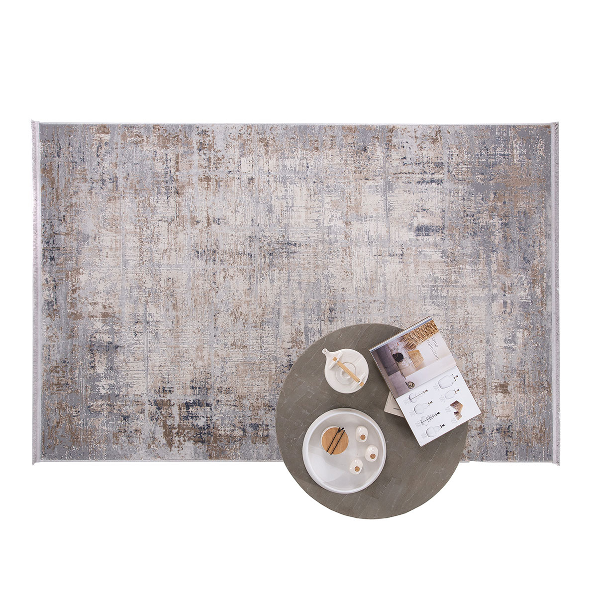 Χαλί μηχανής από τη σειρά Allure της εταιρείας Royal Carpet σε μπεζ απόχρωση με καφέ και γκρι λεπτομέρειες. Απαλό αλλά ανθεκτικό χαλί με καλοδουλεμένη μίξη χρωμάτων και εντυπωσιακό μοντέρνο. Μπορεί να τοποθετηθεί σε όλους τους χώρους του σπιτιού αναβαθμίζοντας την αισθητική τους. Είναι κατασκευασμένο από εξαιρετικής ποιότητας μαλακά και ανεξίτηλα νήματα από πολυπροπυλένιο και polyester (shrink) και το βάρος του είναι 2.000gsm. Η υψηλή περιεκτικότητα σε γυαλιστερό πολυεστερικό νήμα σε συνδυασμό με την πυκνότητα των 546.000κόμπων/τ.μ. δημιουργούν ένα εντυπωσιακό χαλί. Ξεχωρίζει για το ιδιαίτερο φινίρισμα στην πολυεστερική ανάγλυφη επιφάνειά του, ενώ το ύψος του πέλους του είναι 10mm. Διαθέτει εξαιρετικής ποιότητας κρόσσι και υφαντό υπόστρωμα. Είναι αντιστατικό επομένως δεν μαγνητίζονται χνούδια, μικροσωματίδια και σκόνη στην επιφάνεια του χαλιού. Δεν εμπεριέχει επικίνδυνες για τον ανθρώπινο οργανισμό αλλεργιογόνες ή χημικές βλαβερές ουσίες. Τα χαλιά Royal Carpet είναι οικολογικά και φιλικά προς την υγεία.