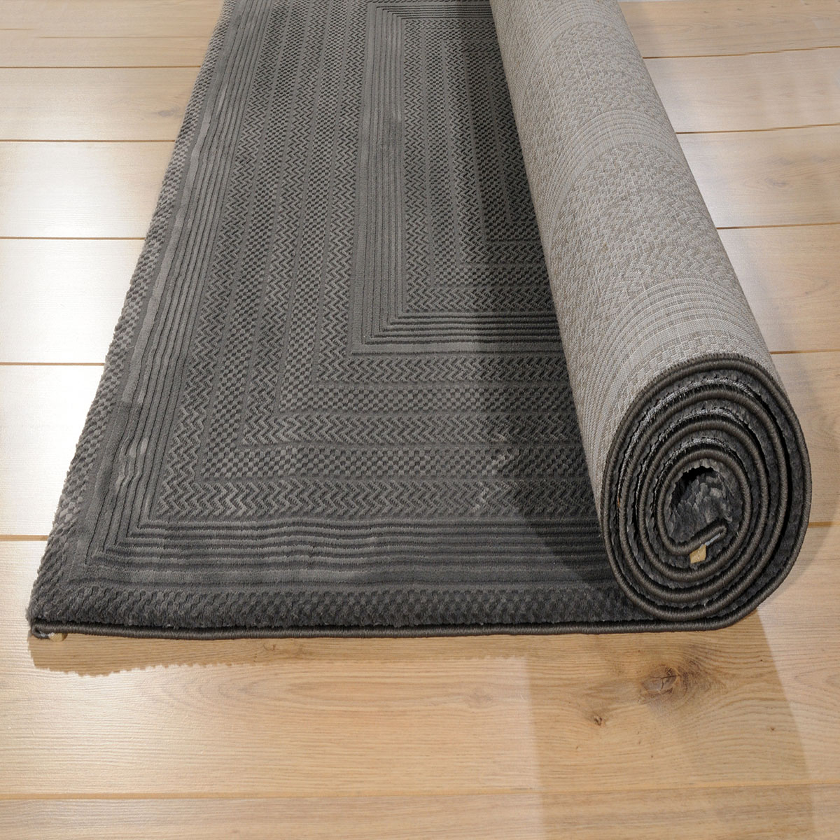 Χαλί μηχανής 240x300 από τη σειρά Signature της εταιρείας Tzikas Carpets σε ανθρακί χρώμα με διακριτικό γεωμετρικό σχέδιο. Απαλό αλλά ανθεκτικό χαλί. Μπορεί να τοποθετηθεί σε όλους τους χώρους του σπιτιού αναβαθμίζοντας την αισθητική τους. Είναι κατασκευασμένο από εξαιρετικής ποιότητας ανεξίτηλα νήματα από 100% ανακυκλωμένο polyester. Tο βάρος του είναι 3.130gsm, ενώ η πυκνότητά του ανέρχεται στους 1.000.000 κόμπους/τ.μ. Η επιφάνεια του χαλιού σε συνδυασμό με το πέλος ύψους 13mm, εξασφαλίζουν μία μοναδική αίσθηση στο πάτημα. Το υπόστρωμά του είναι υφαντό, στοιχείο που το καθιστά ιδιαίτερα ανθεκτικό. Είναι αντιστατικό, επομένως δεν μαγνητίζονται χνούδια, μικροσωματίδια και σκόνη στην επιφάνεια του χαλιού. Δεν εμπεριέχει επικίνδυνες για τον ανθρώπινο οργανισμό αλλεργιογόνες ή χημικές βλαβερές ουσίες. Τα χαλιά Tzikas Carpets είναι φιλικά προς την υγεία και το περιβάλλον, καθώς είναι υποαλλεργικά και οικολογικά. Έχουν πιστοποίηση του Γερμανικού ινστιτούτου Oeko-Tex Standard 100.